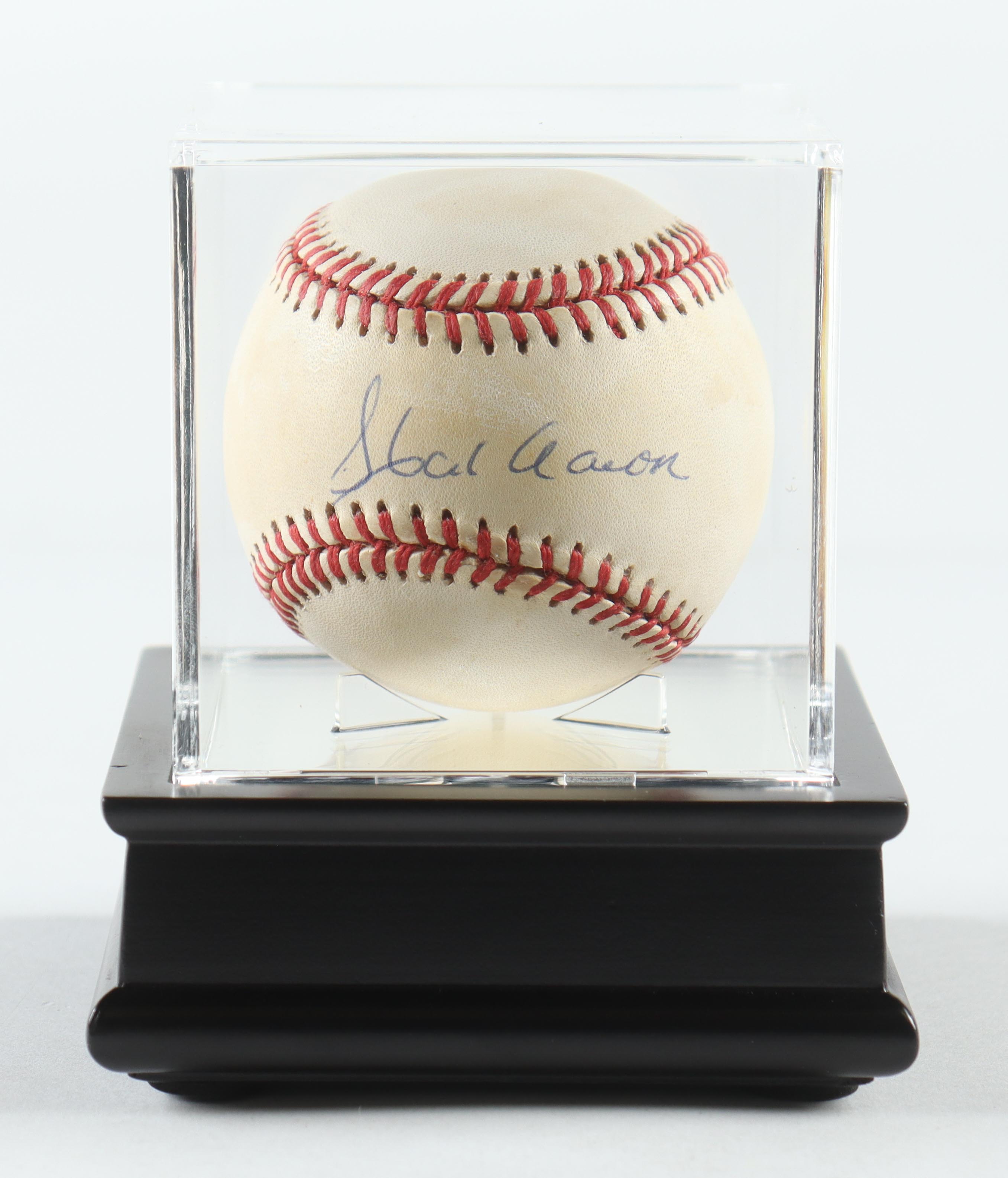 Hank Aaron Signed ONL Baseball In Display Case (PSA)