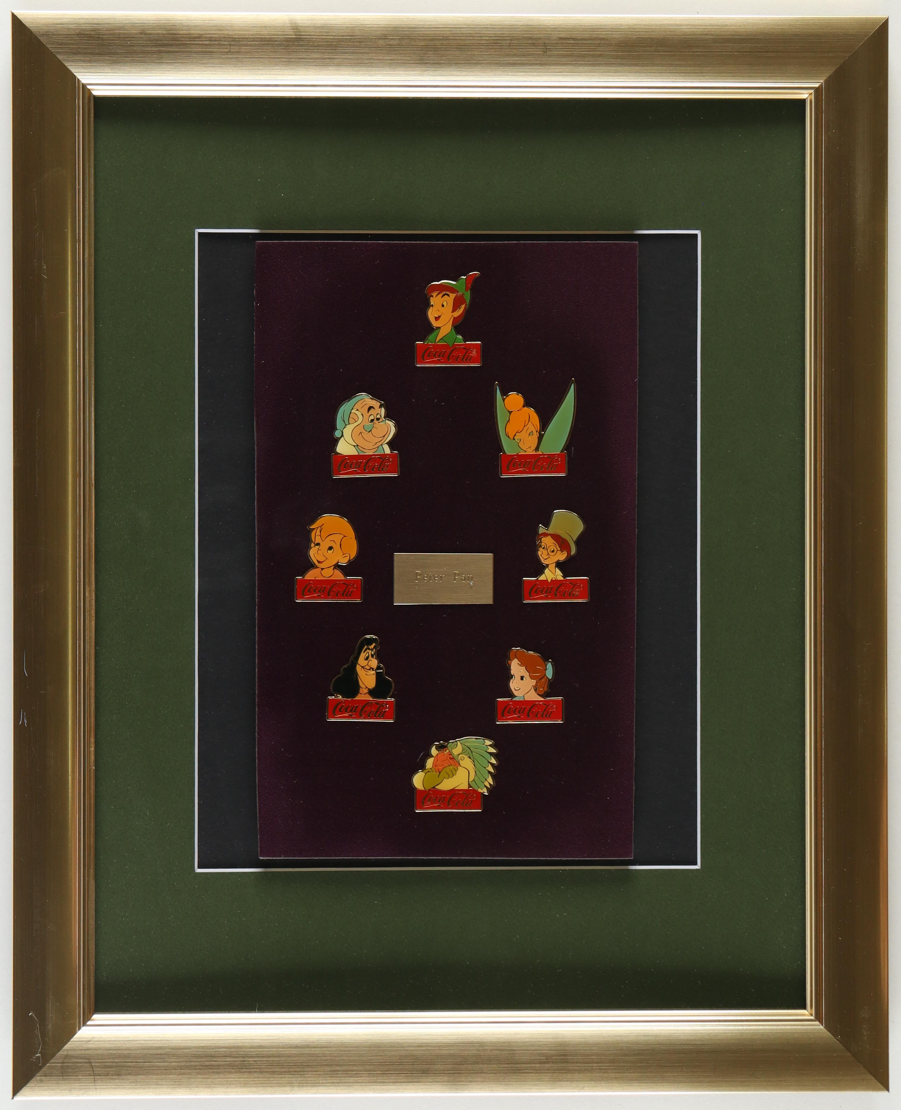 Walt Disney World "Peter Pan" Coca Cola Celebrates 15 Years Custom Framed 8 Pin Set