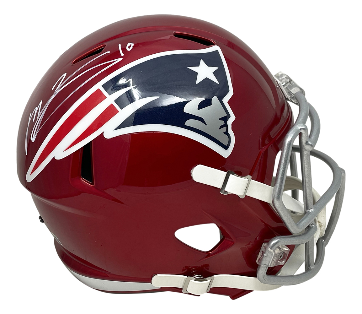 Riddell New England Patriots full-size replica Flash Alternate Speed helmet. Hand-signed by Mac Jones.