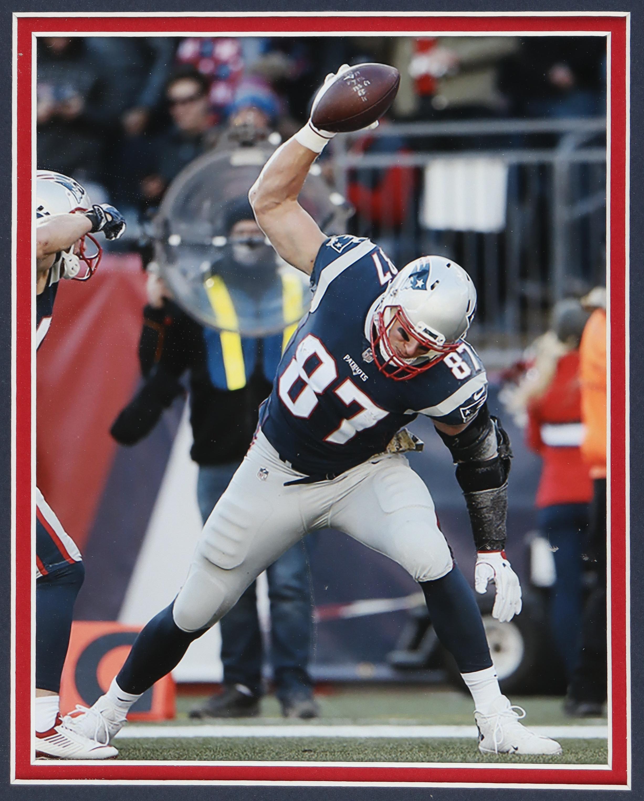 Custom frame measures 33.5" x 42" in size and features a jersey that has been hand-signed by Rob Gronkowski.