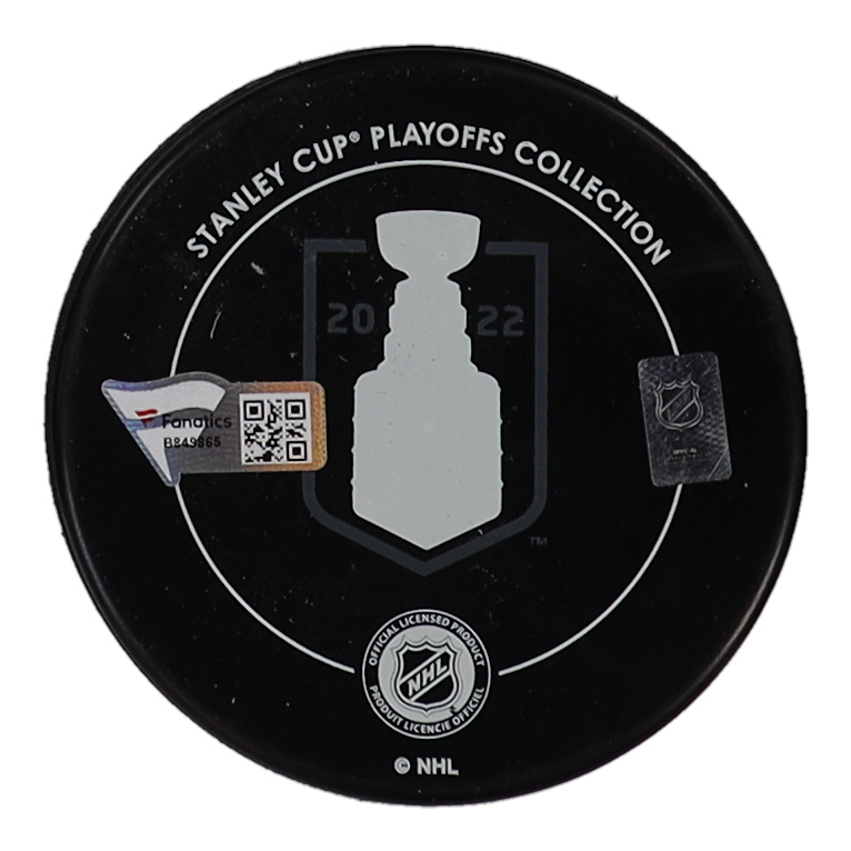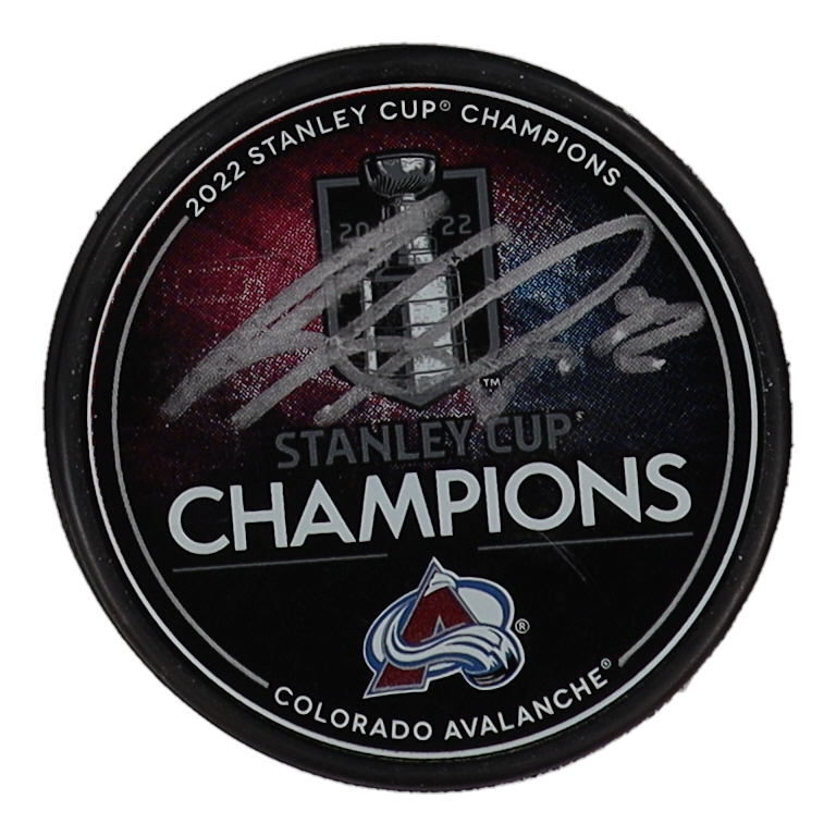 2022 Stanley Cup Champions logo hockey puck. Hand-signed by Gabriel Landeskog (Colorado Avalanche).