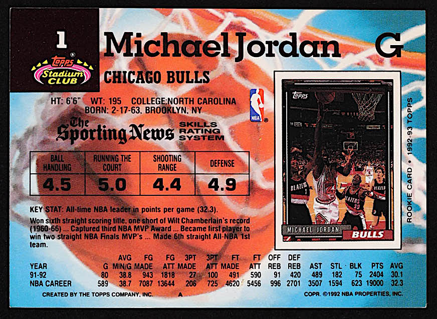 Michael Jordan 1992-93 Stadium Club #1