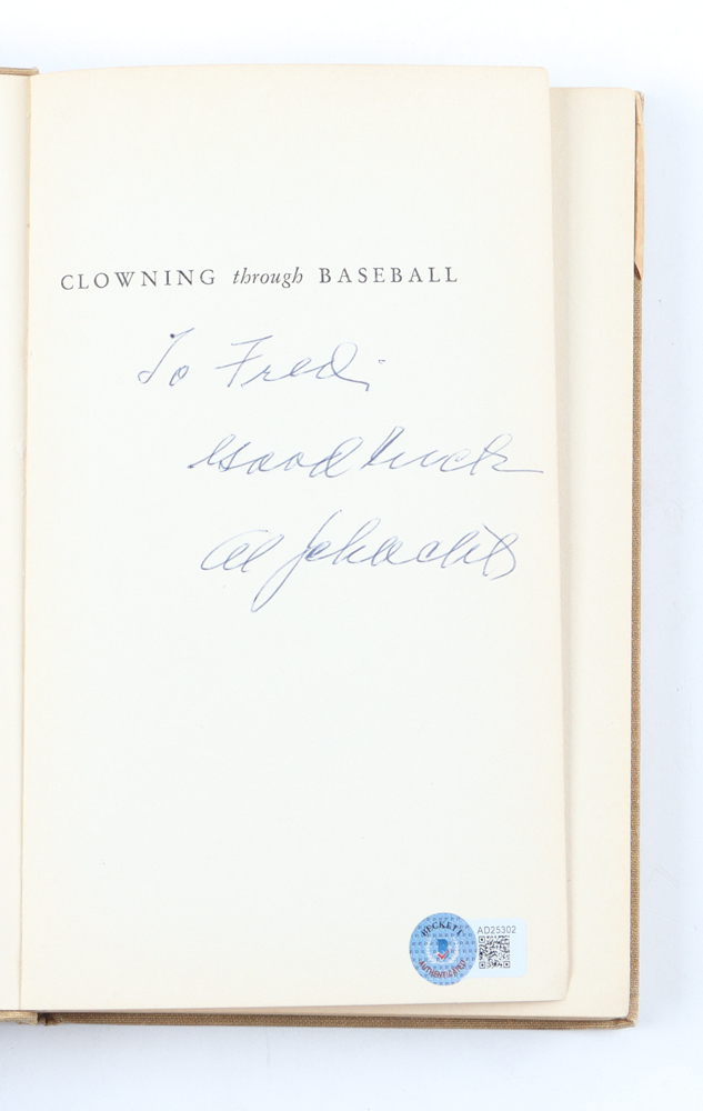 Hard-cover book has been hand-signed in the inside cover page by Al Schacht (D. 1984, Washington Senators). Please note, book shows signs of wear and inscription has been personalized to "Fred". Refer to photos for more details on the condition of the book.