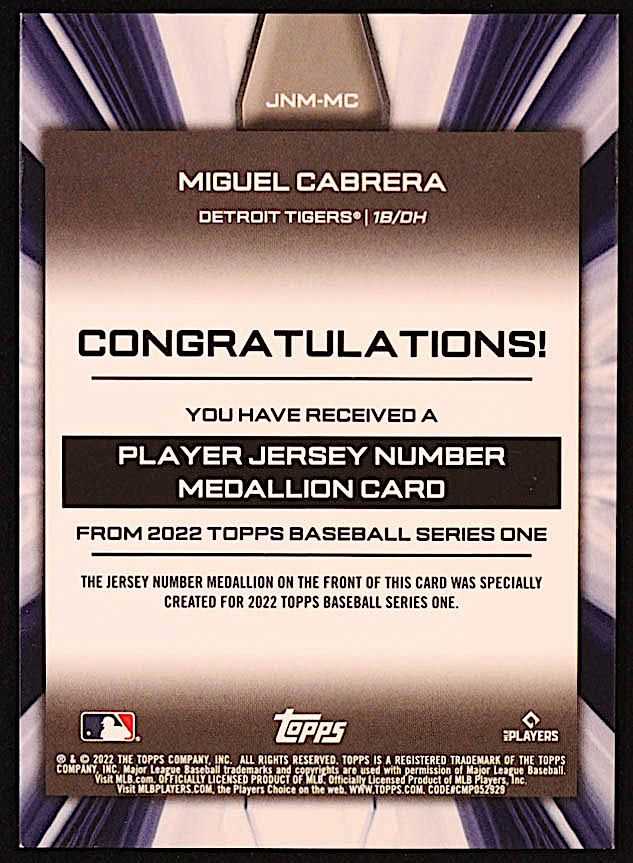 Miguel Cabrera 2022 Topps Commemorative Player Jersey Number Medallions #JNMMC