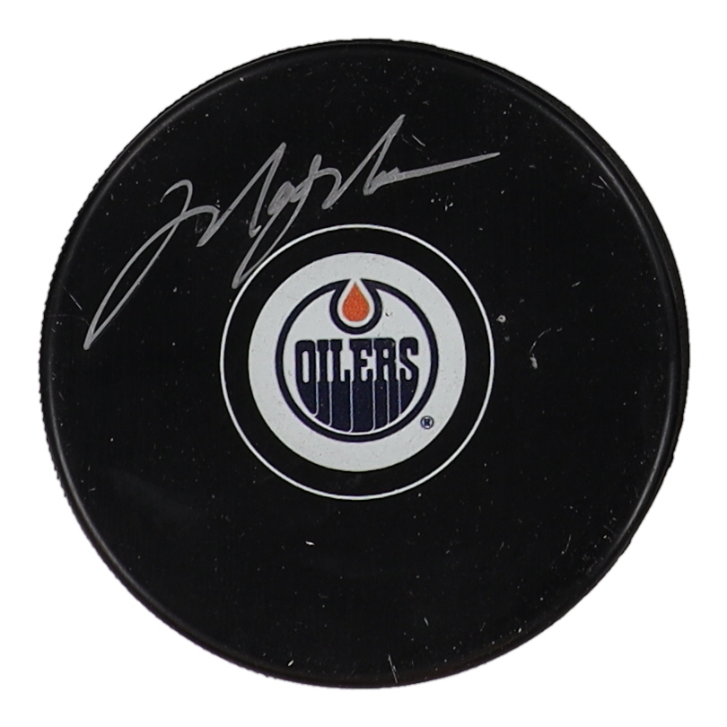 Edmonton Oilers logo hockey puck has been hand-signed by Mark Messier (HOF).