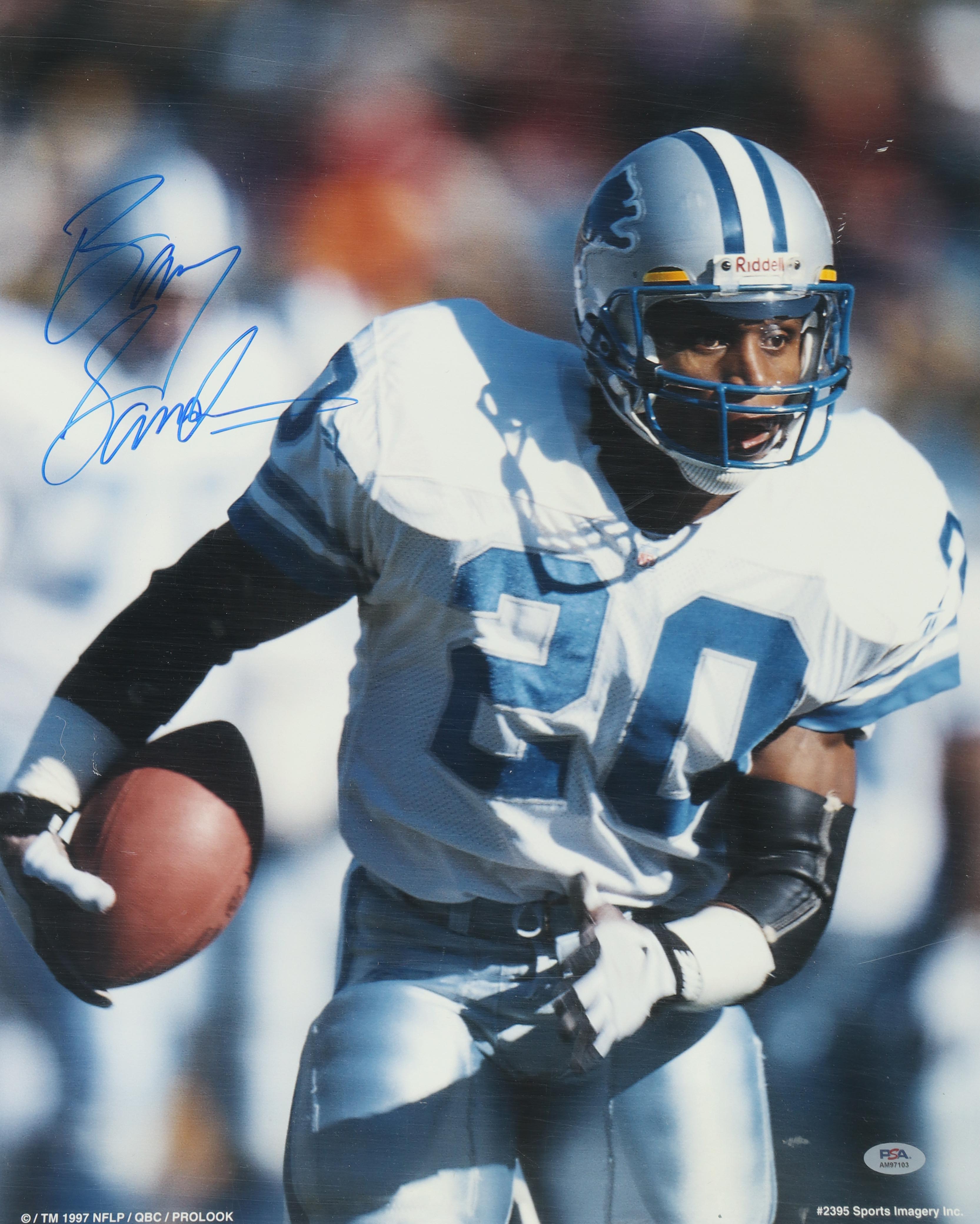 Photo measures approximately 16" x 20" in size. Hand-signed by Barry Sanders (HOF). Please refer to photos for more details on the condition of the item.