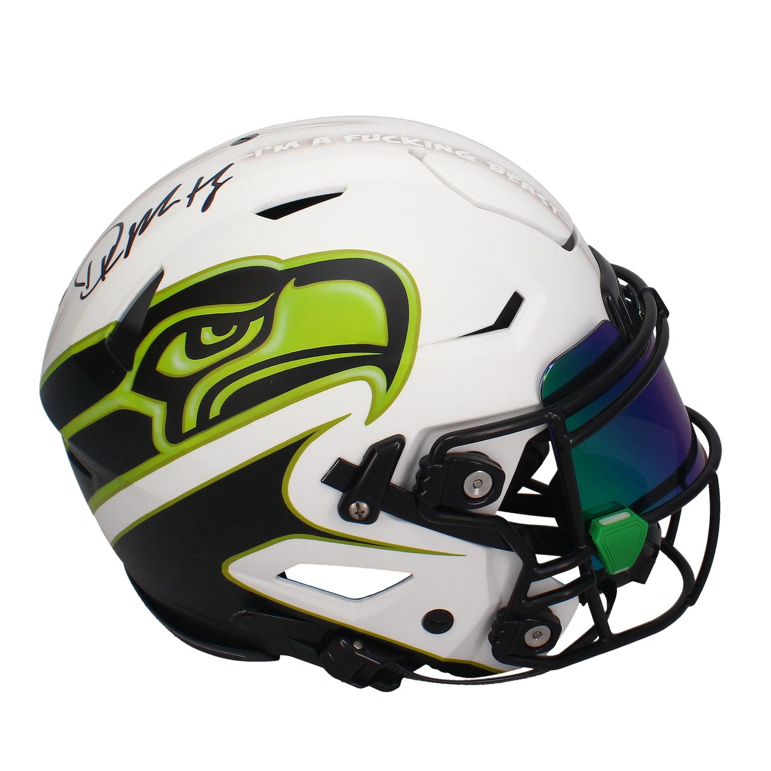Riddell Seattle Seahawks full-size authentic on-field Custom Painted Speed-Flex helmet. Hand-signed by D.K. Metcalf. Custom visor is included as shown.