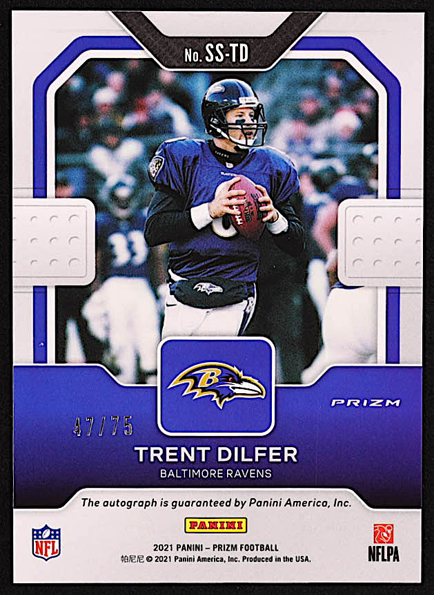 Trent Dilfer 2021 Panini Prizm Sensational Signatures Prizms Blue Ice #41 #47/75