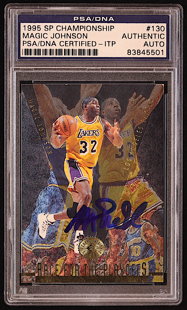 Magic Johnson Signed 1995-96 SP Championship #130 RP (PSA)