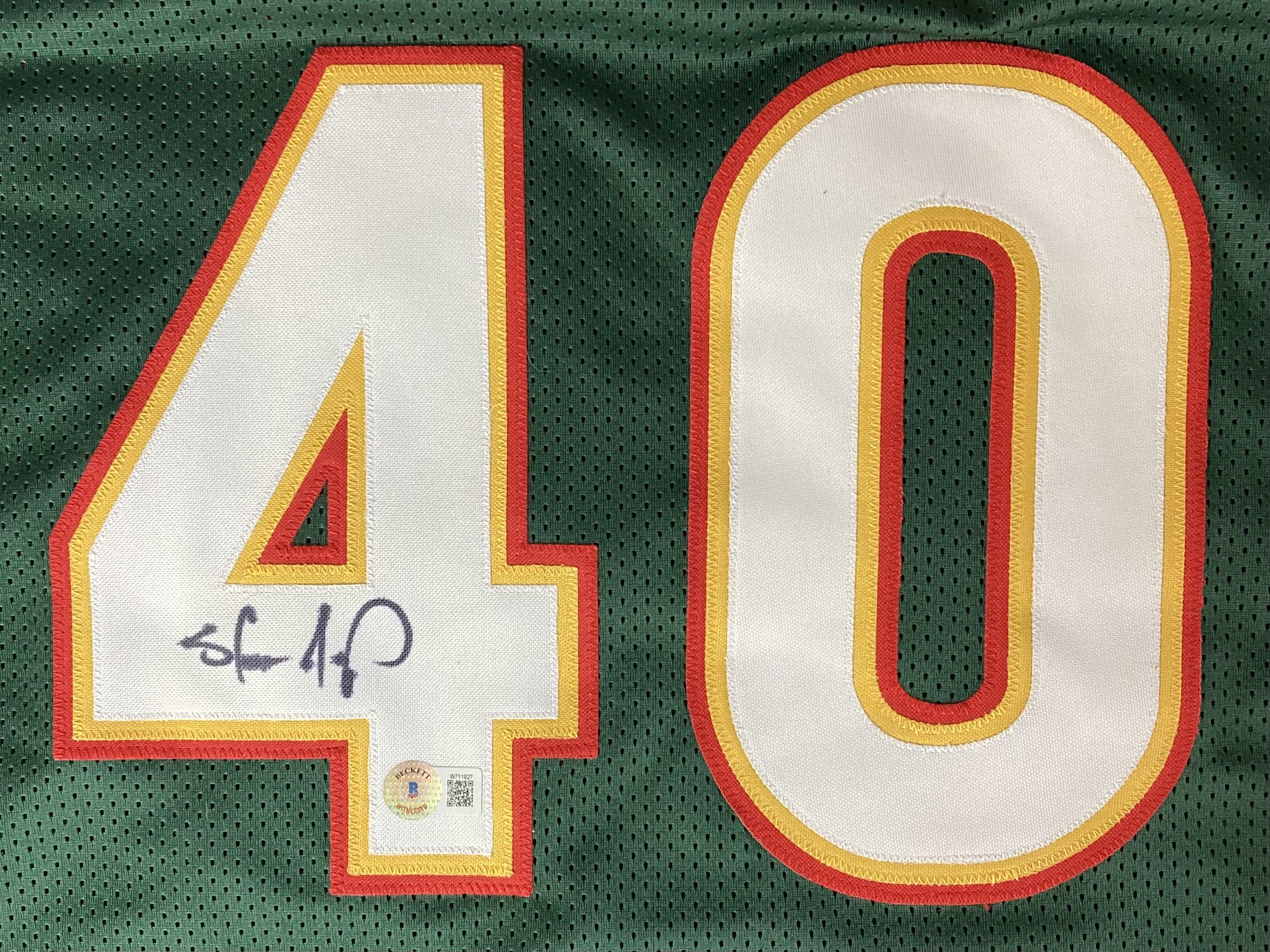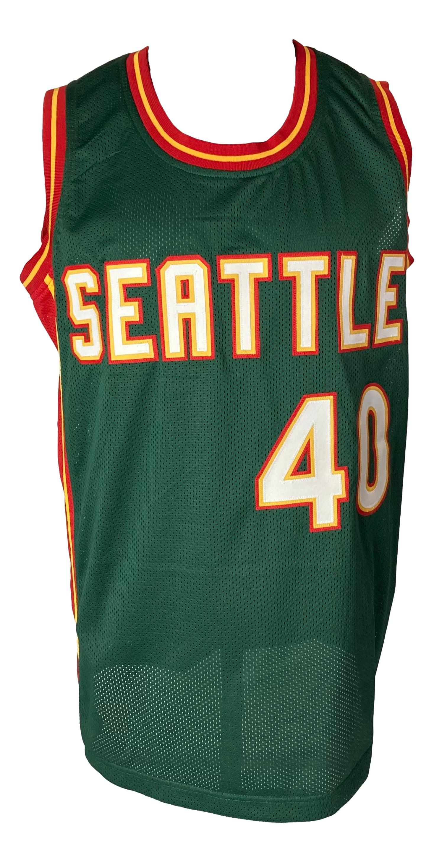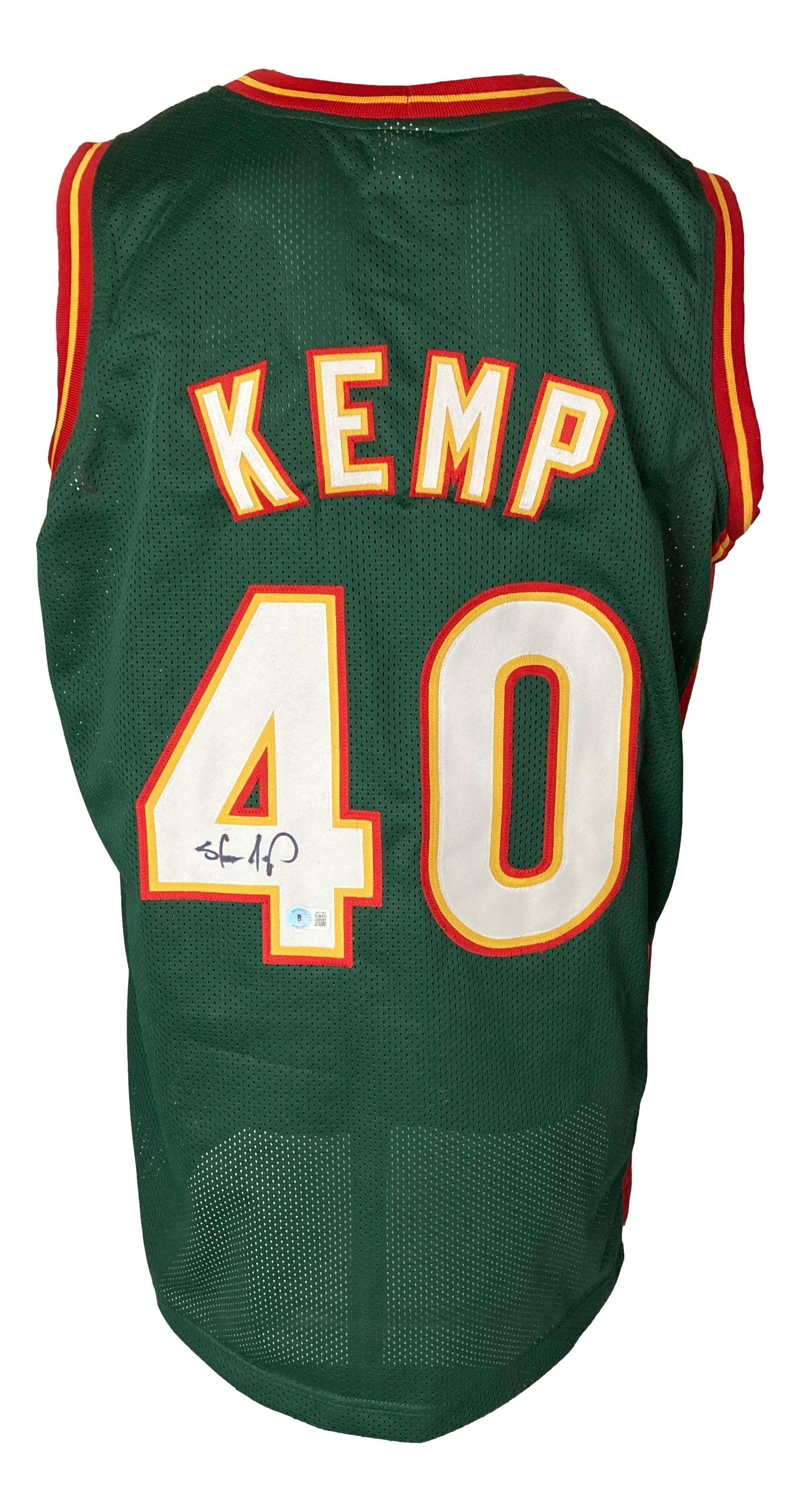 Custom jersey. Everything sewn on, size XL. Hand-signed by Shawn Kemp.