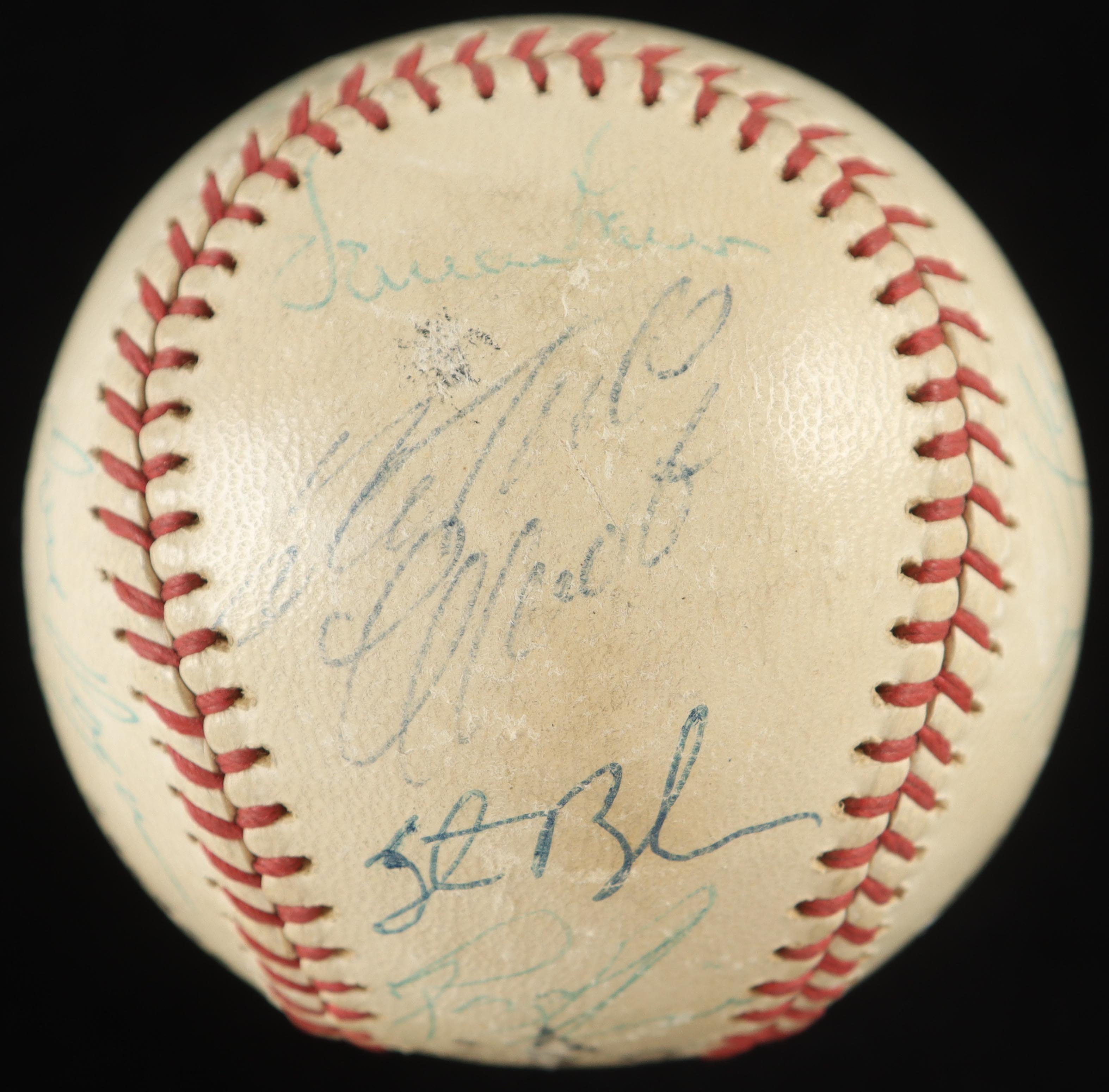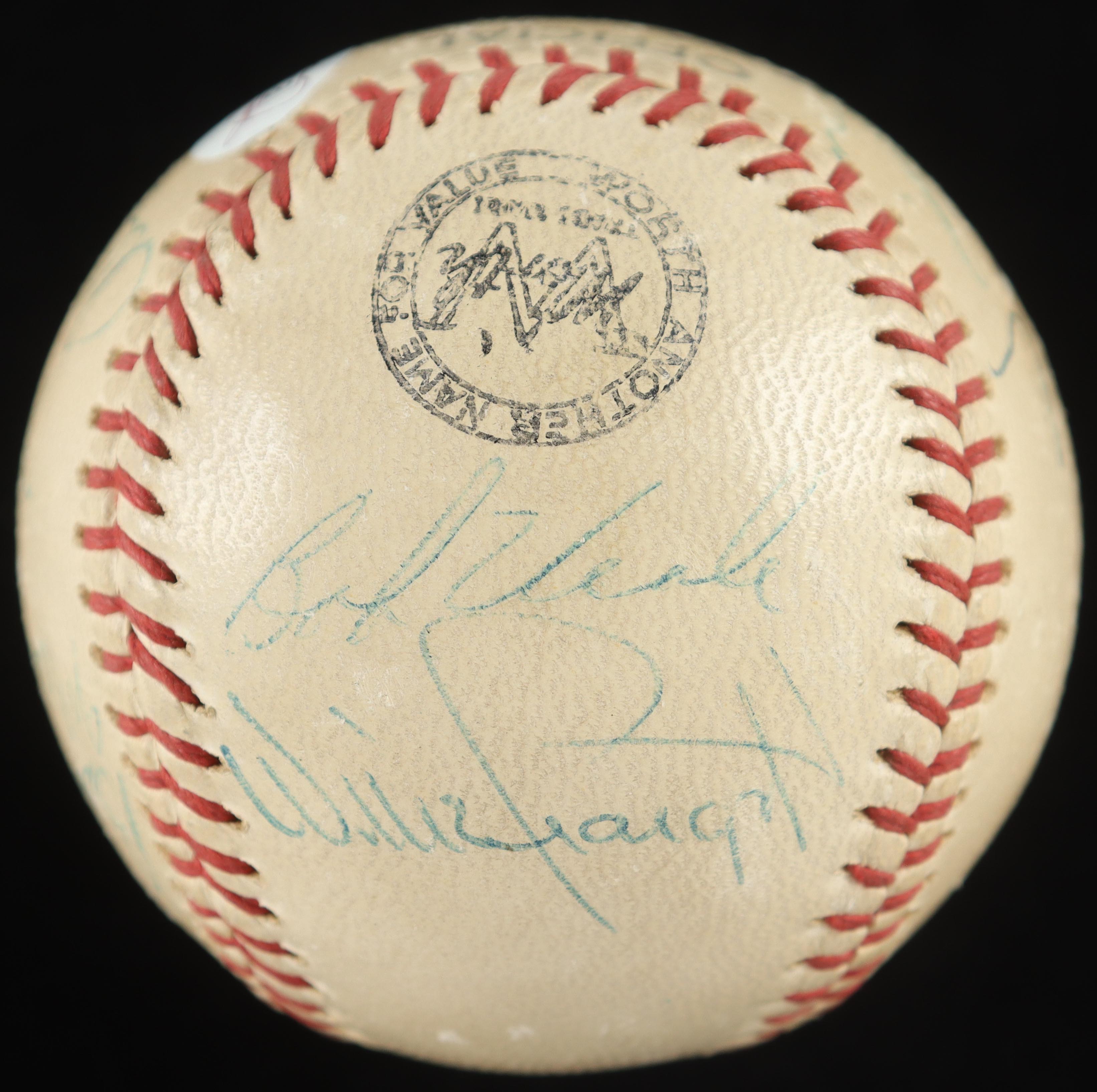 Worth Official Little League Baseball. Hand-signed by the 1969 Pittsburgh Pirates (13). Notable signatures include Roberto Clemente (D. 1972, HOF) & Willie Stargell (D. 2001, HOF). Display case is included. Please note, baseball is naturally toned and some signatures have faded. Refer to photos for more details on the condition of the item.