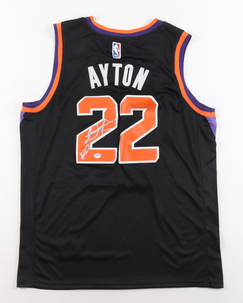 Nike jersey. Everything is sewn on, size 52. Hand-signed by Deandre Ayton. Please note, there are stains on the front logo.