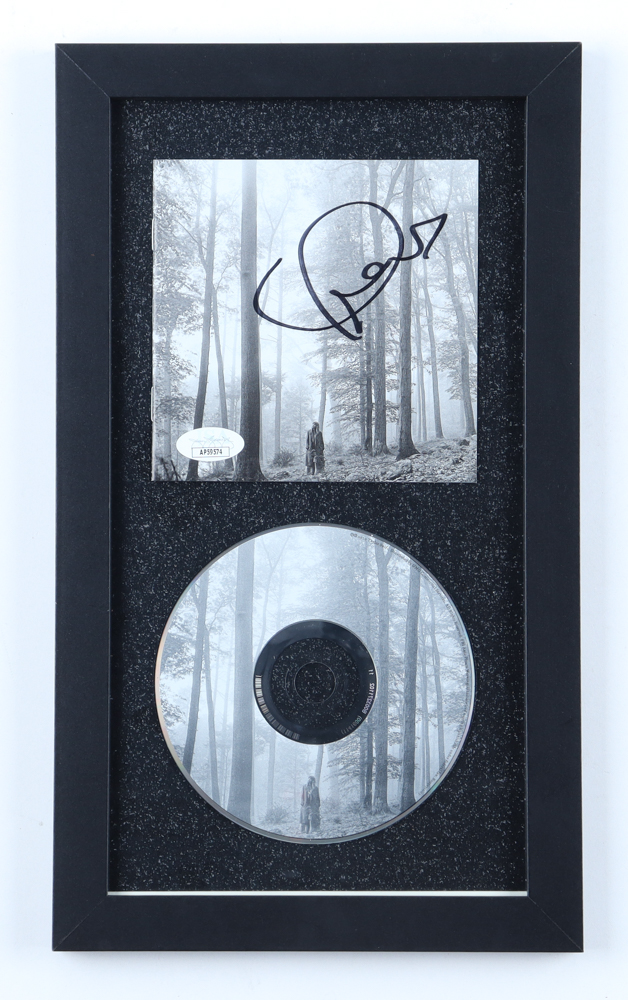 Custom frame measures approximately 8" x 13.5" in size. Features a "Folklore" CD album cover that has been hand-signed by Taylor Swift. The CD disc is included as shown.