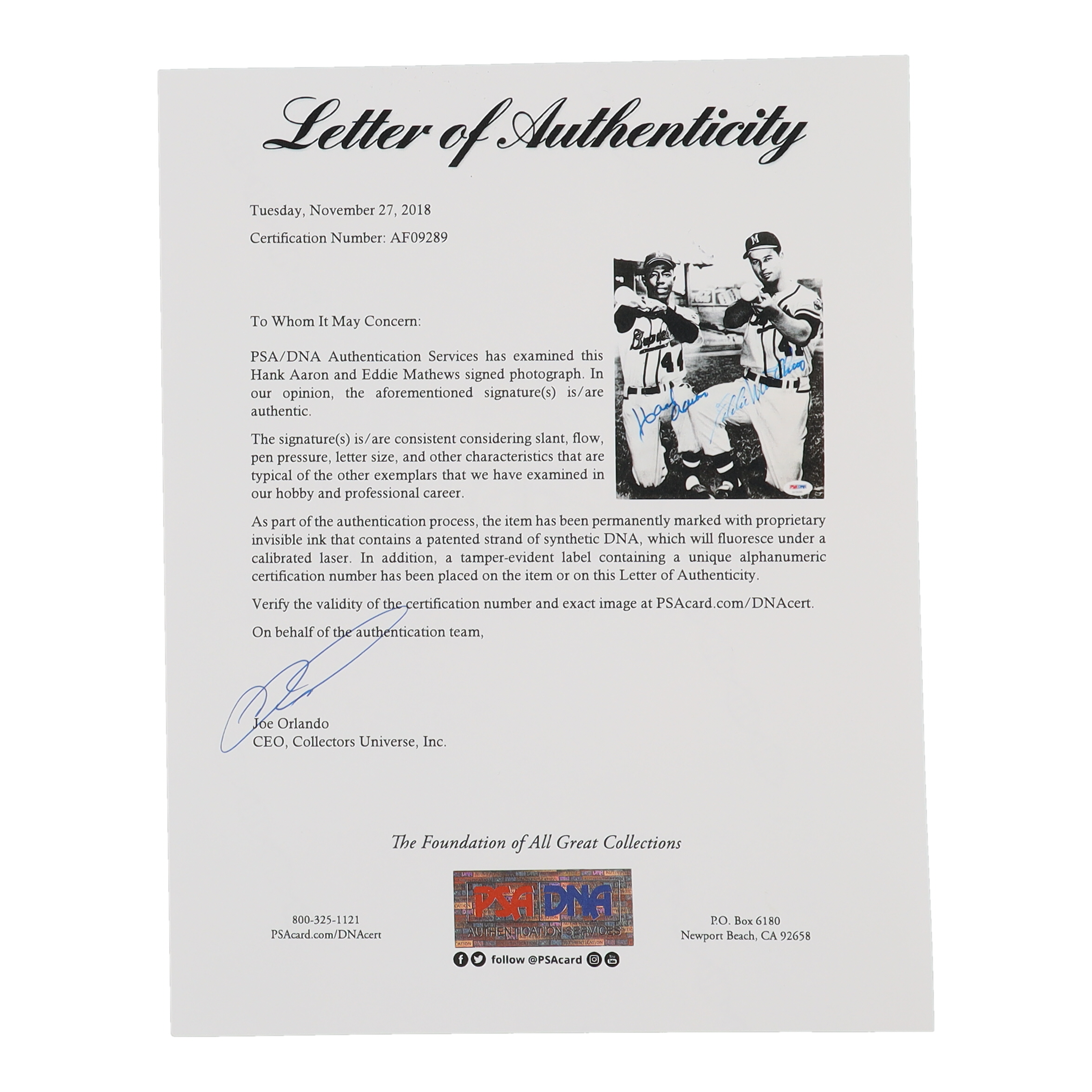 The autograph(s) includes an official PSA/DNA hologram and matching LOA for authenticity purposes.