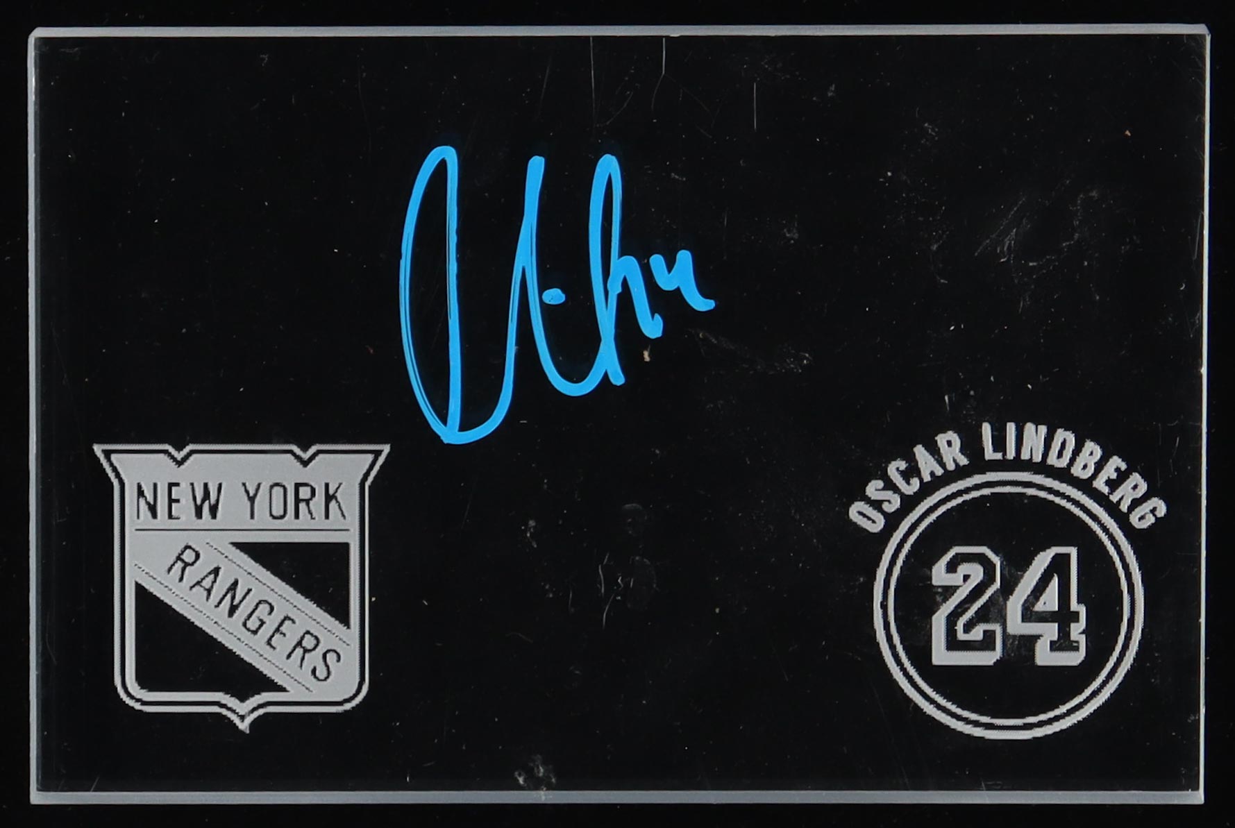 Plexiglass piece measures approximately 4" x 6" in size and has been hand-signed by Oscar Lindberg (New York Rangers). Please note, there are scratches on the plexiglass.