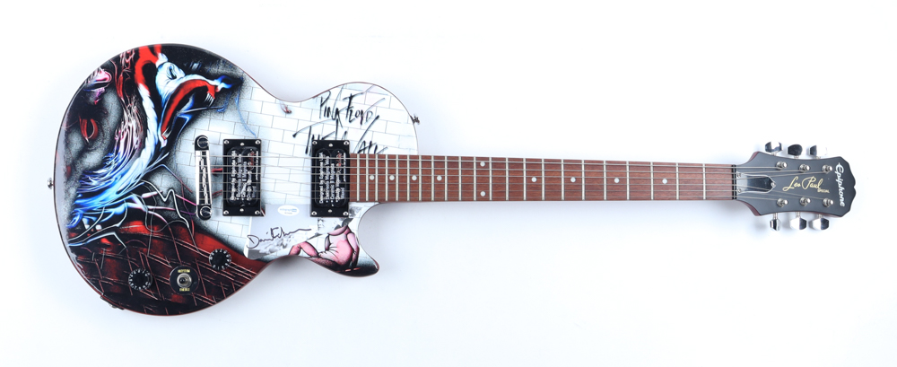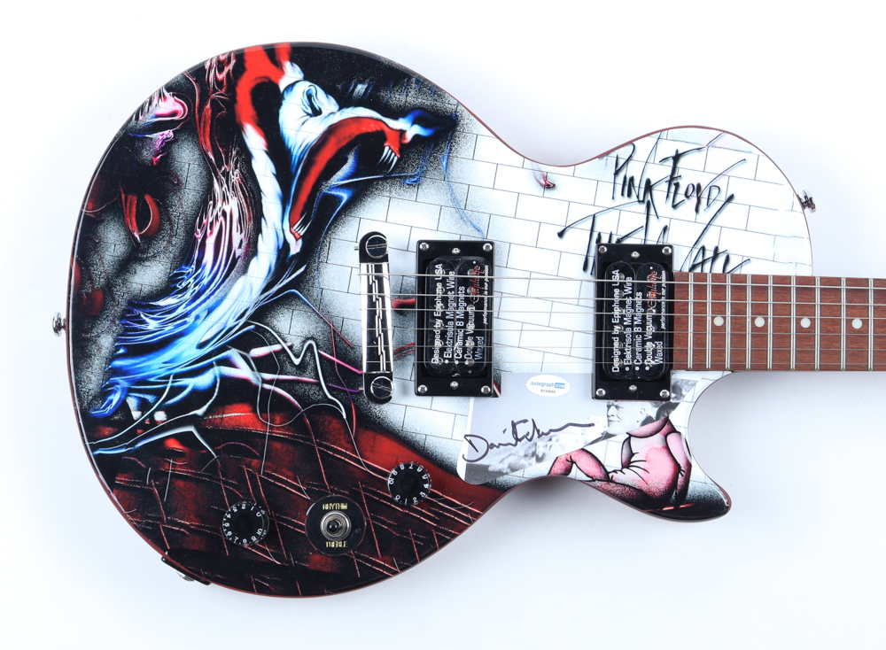 Epiphone Les Paul Special Electric guitar measures 39" in length and has been hand-signed on a cut that has been repurposed as the pick-guard by David Gilmour.