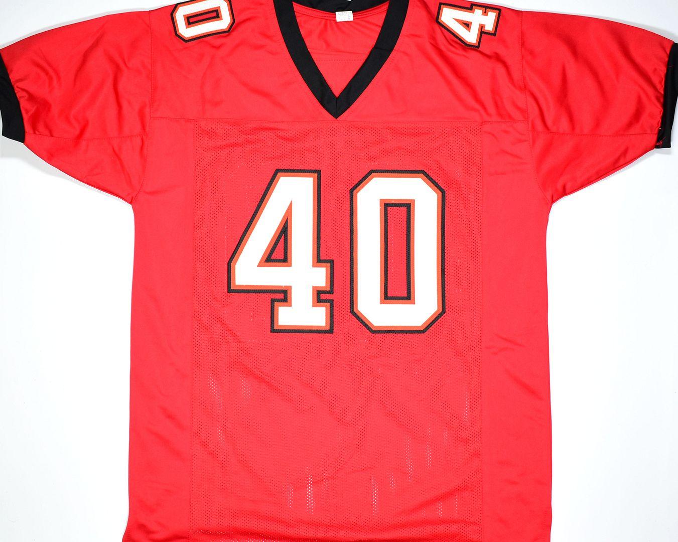Jersey with everything sewn on, size XL. Hand-signed and inscribed by Mike Alstott.