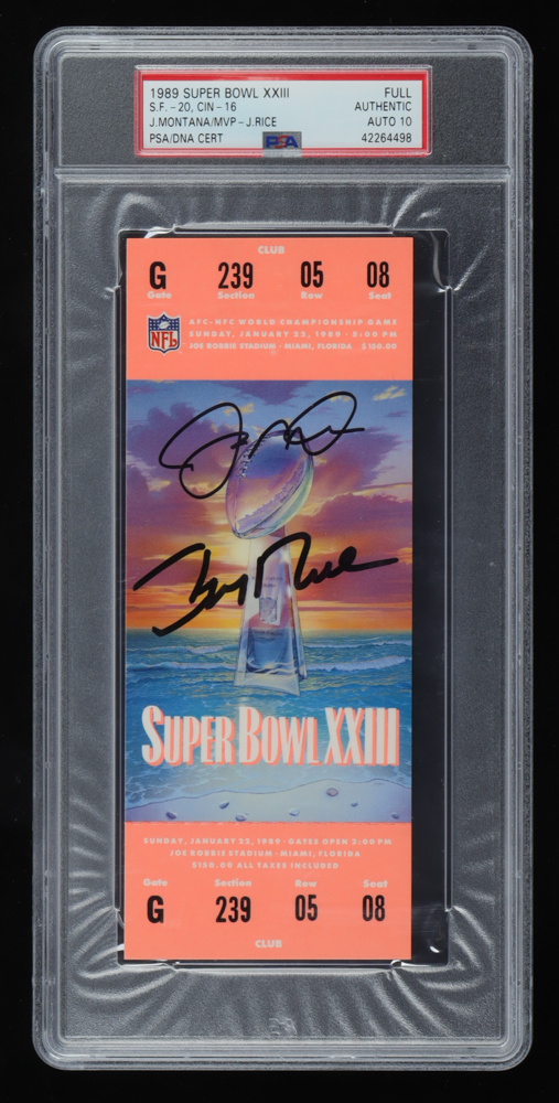 Joe Montana & Jerry Rice Signed 1989 Super Bowl XXIII Ticket (PSA | Auto 10)