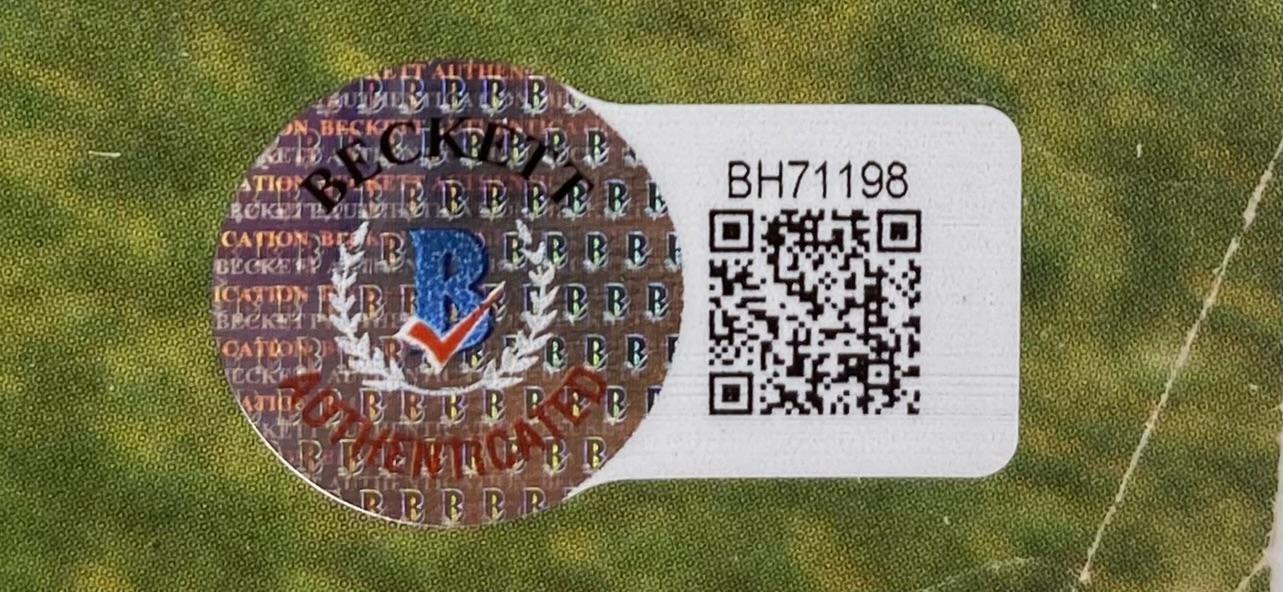 The autograph includes an official Beckett Authentication Services serially-numbered hologram and matching COA for authenticity purposes.