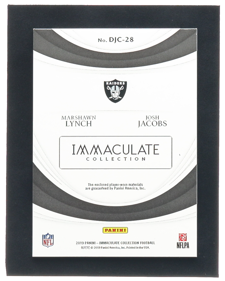 Josh Jacobs / Marshawn Lynch 2019 Immaculate Collection Immaculate Dual Jersey Combos #28 #32/50