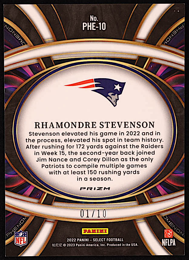 Rhamondre Stevenson 2022 Select Phenomenon Prizm Gold #10 #1/10