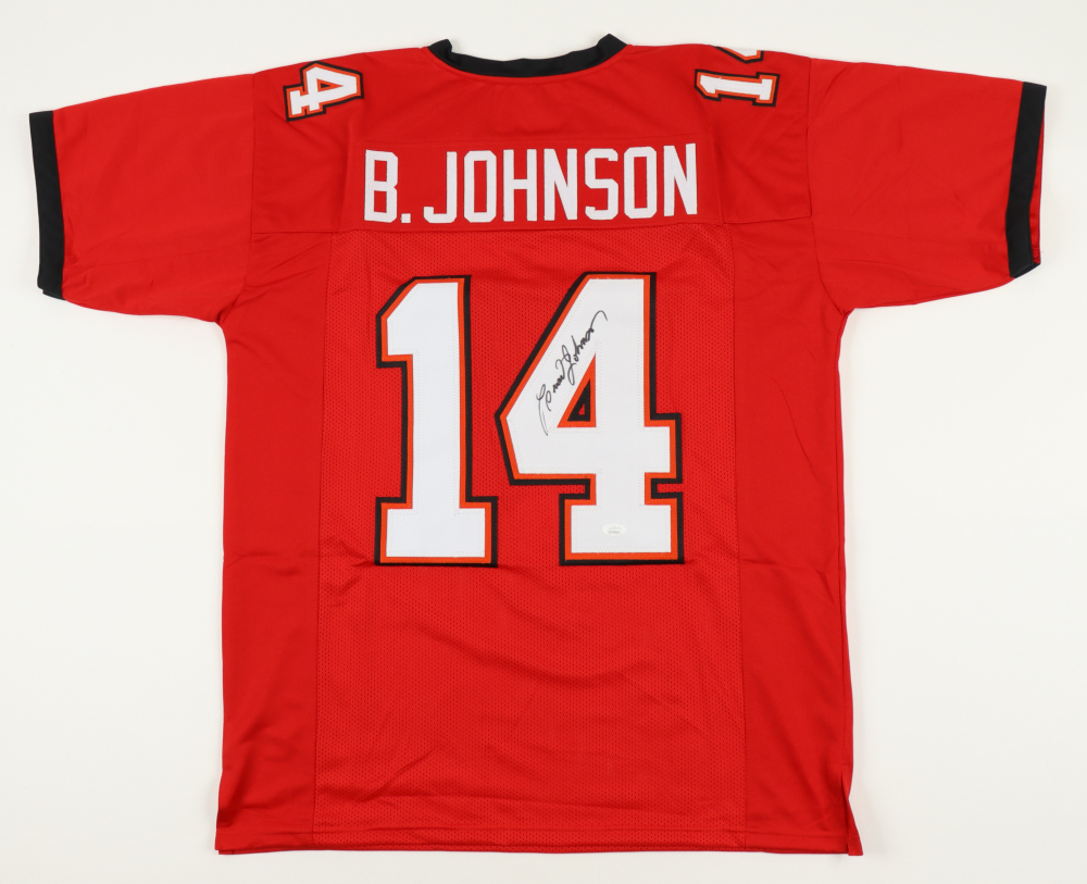 Custom jersey with everything sewn on, size XL. Hand-signed by Brad Johnson.