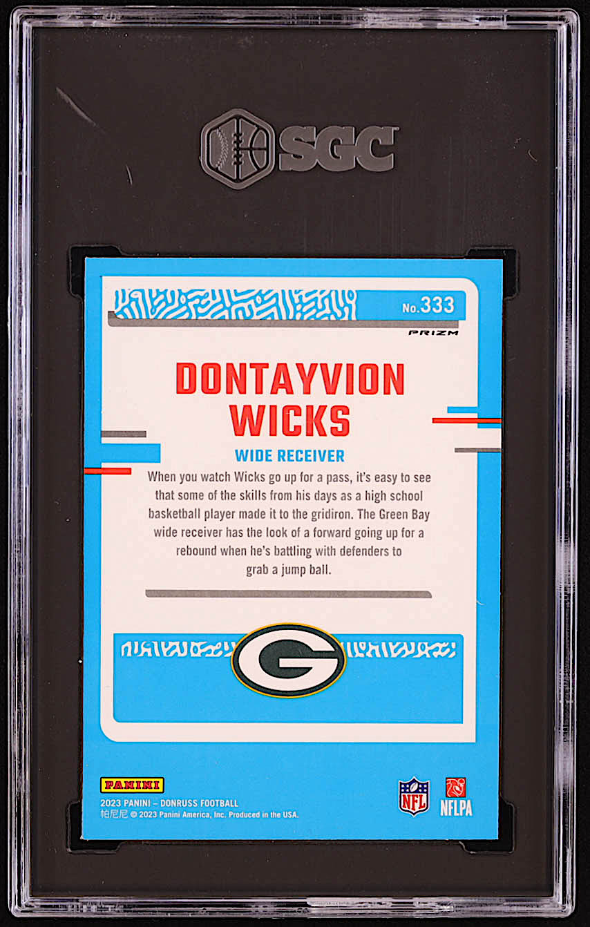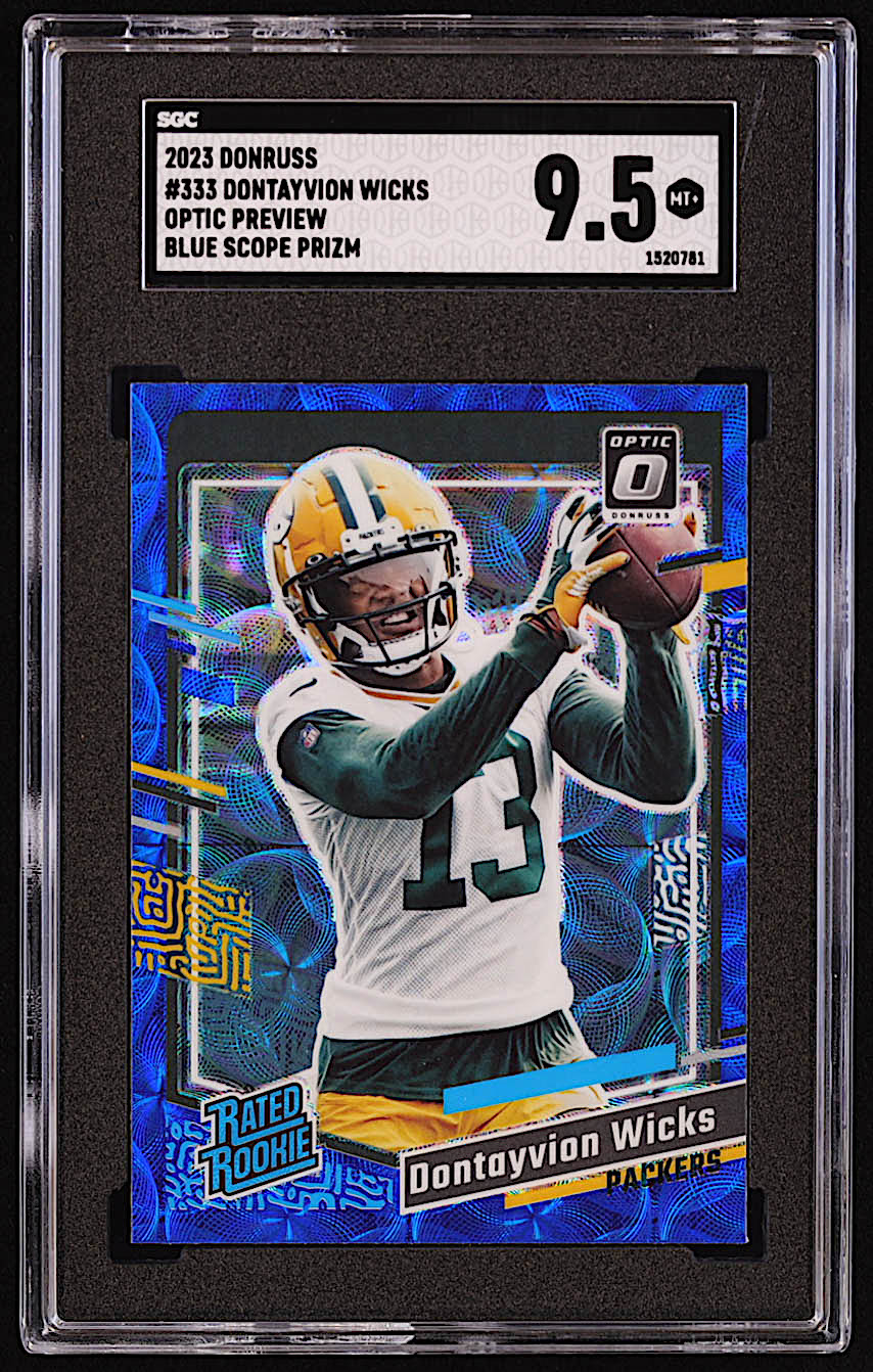 Dontayvion Wicks 2023 Donruss Optic Rated Rookies Preview Blue Scope #333 RC (SGC 9.5)