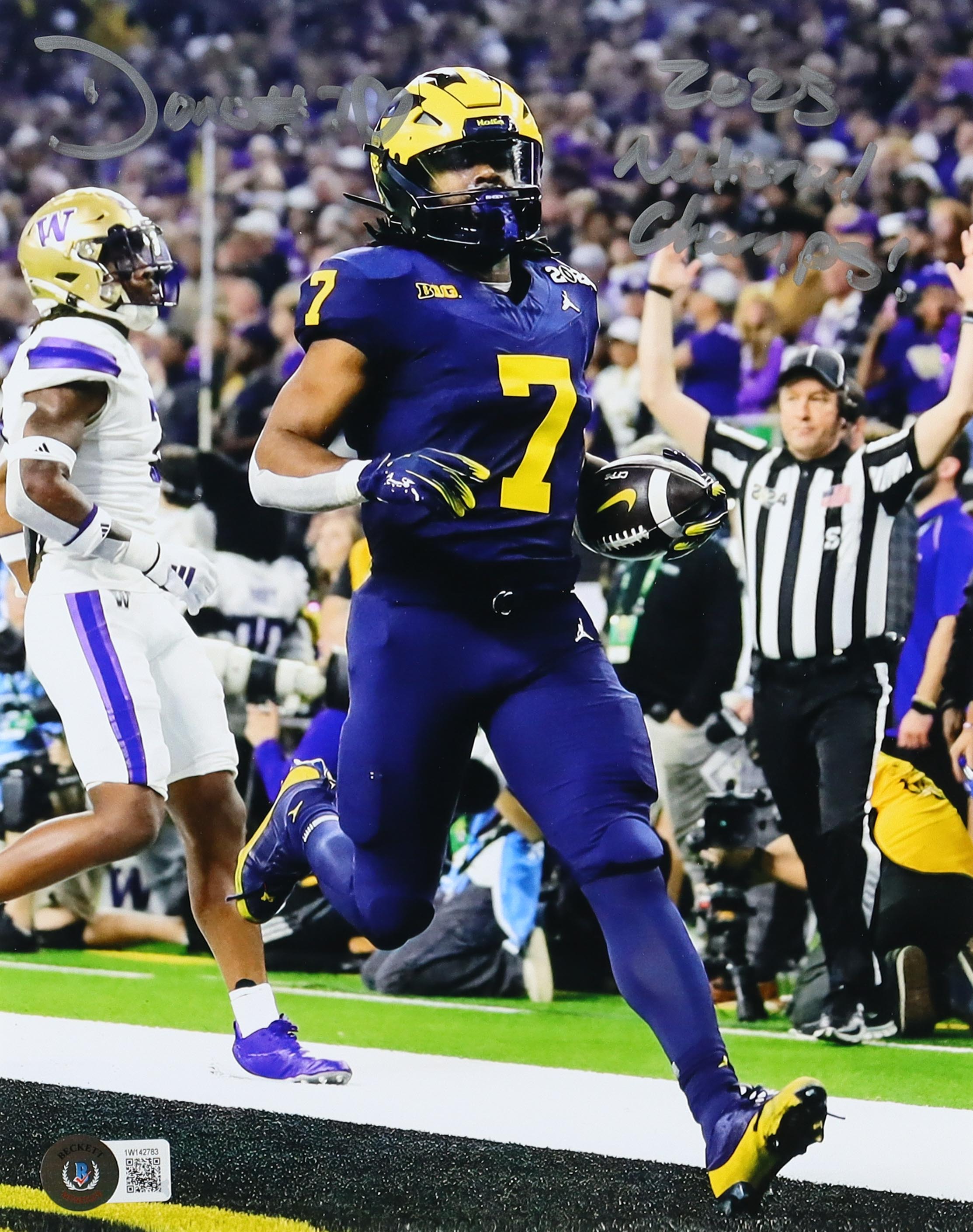 Donovan Edwards Signed Michigan Wolverines 8x10 Photo Inscribed "2023 National Champs!" With Hand-Drawn Heart (Beckett)