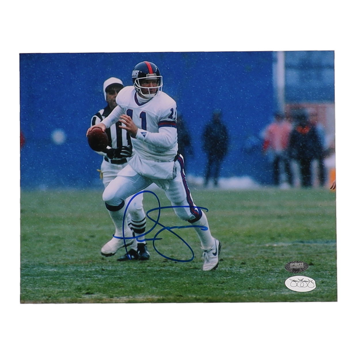Photo measures 8" x 10" in size and has been hand-signed by Phil Simms (New York Giants).