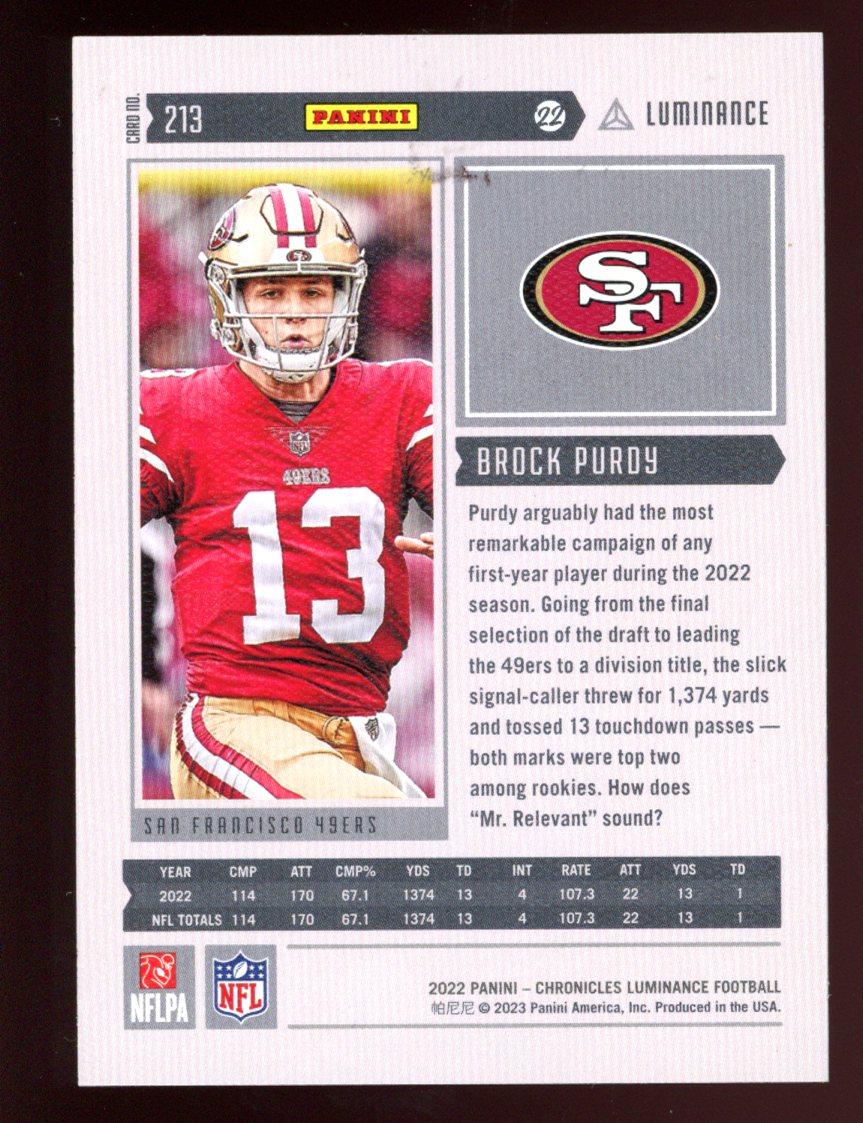 Brock Purdy 2022 Panini Chronicles Luminance Update Vertical Rookies #213