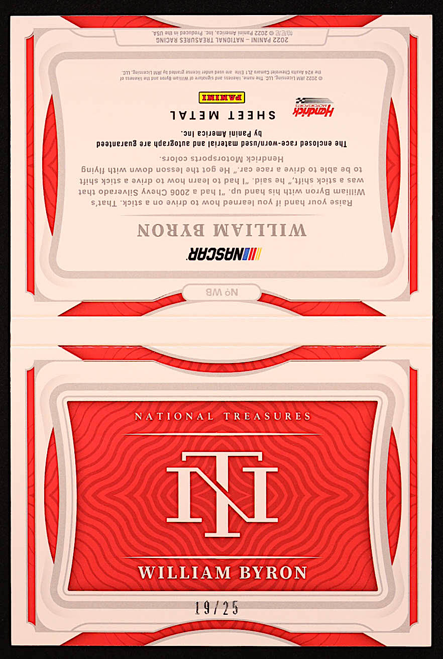 William Byron 2022 Panini National Treasures Jumbo Tire Signature Booklet #3 #19/25