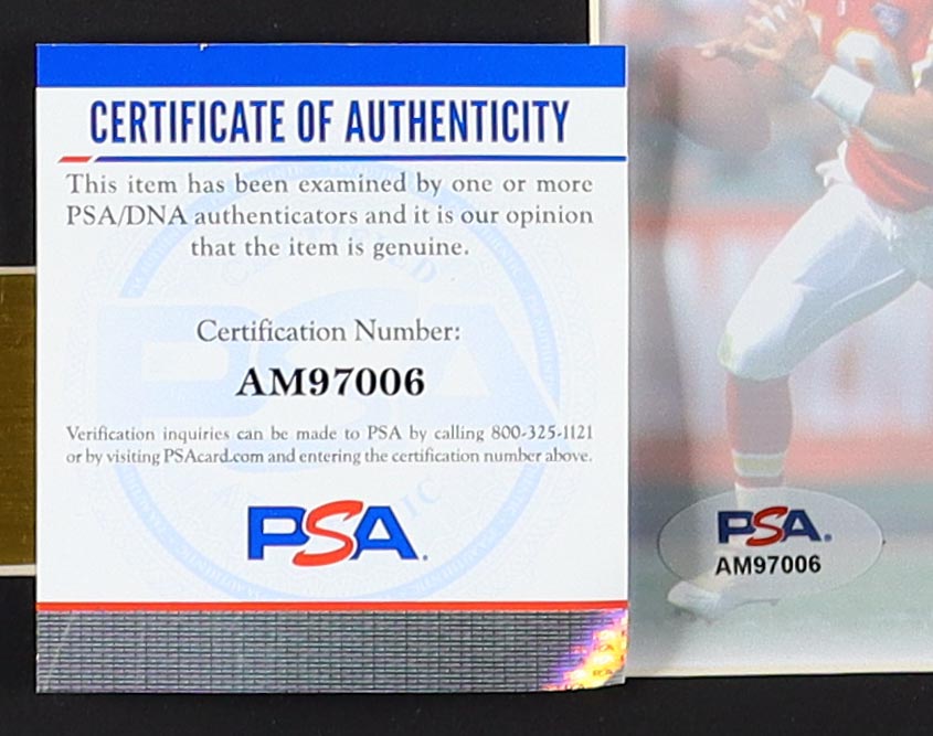 The lot / autograph(s) includes an official Joe Montana player hologram for authenticity purposes and includes an official PSA/DNA hologram and matching COA for authenticity purposes.