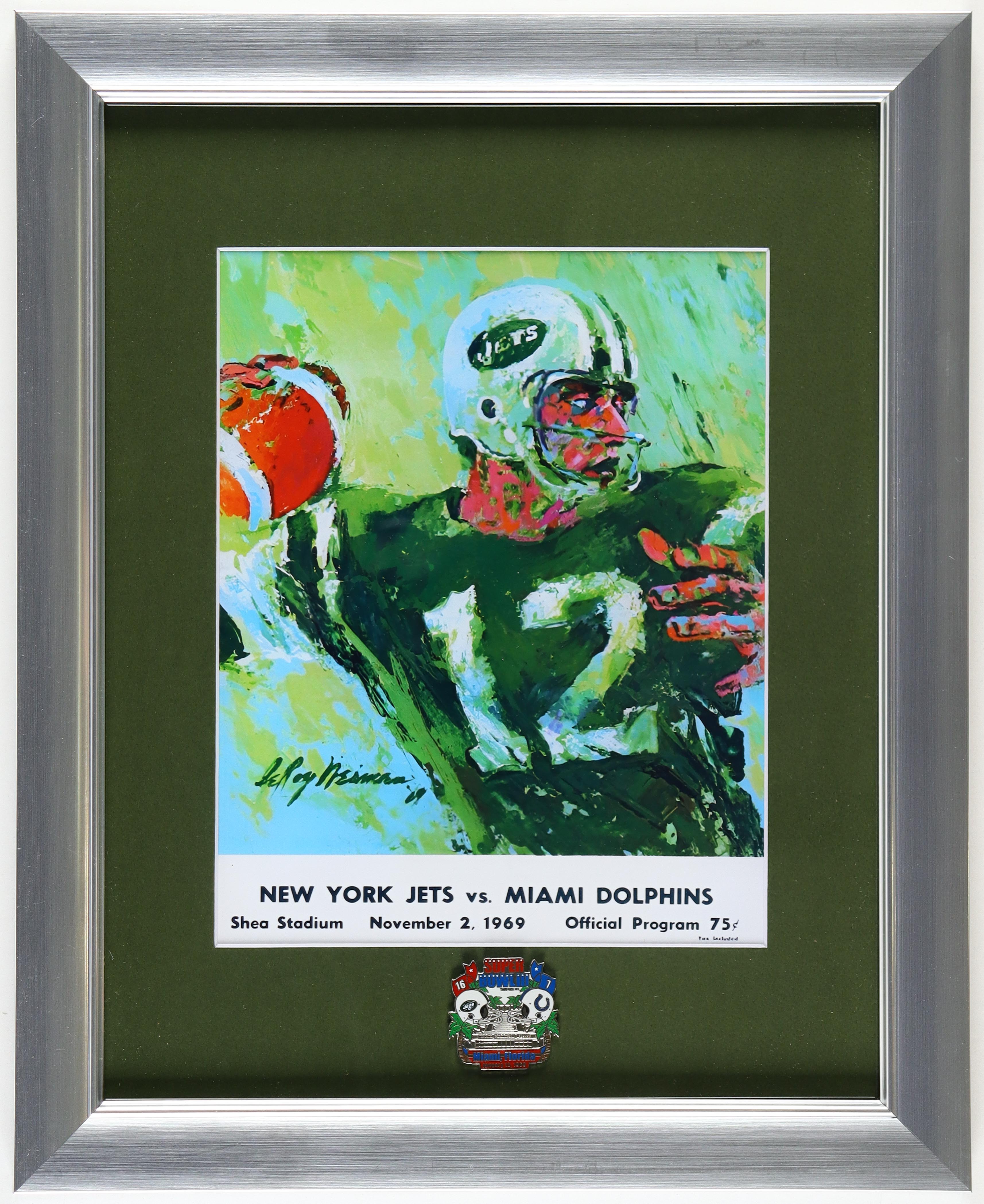 LeRoy Neiman "Joe Namath Jets Super Bowl" Custom Framed Art Print Display with Official Super Bowl III Pin