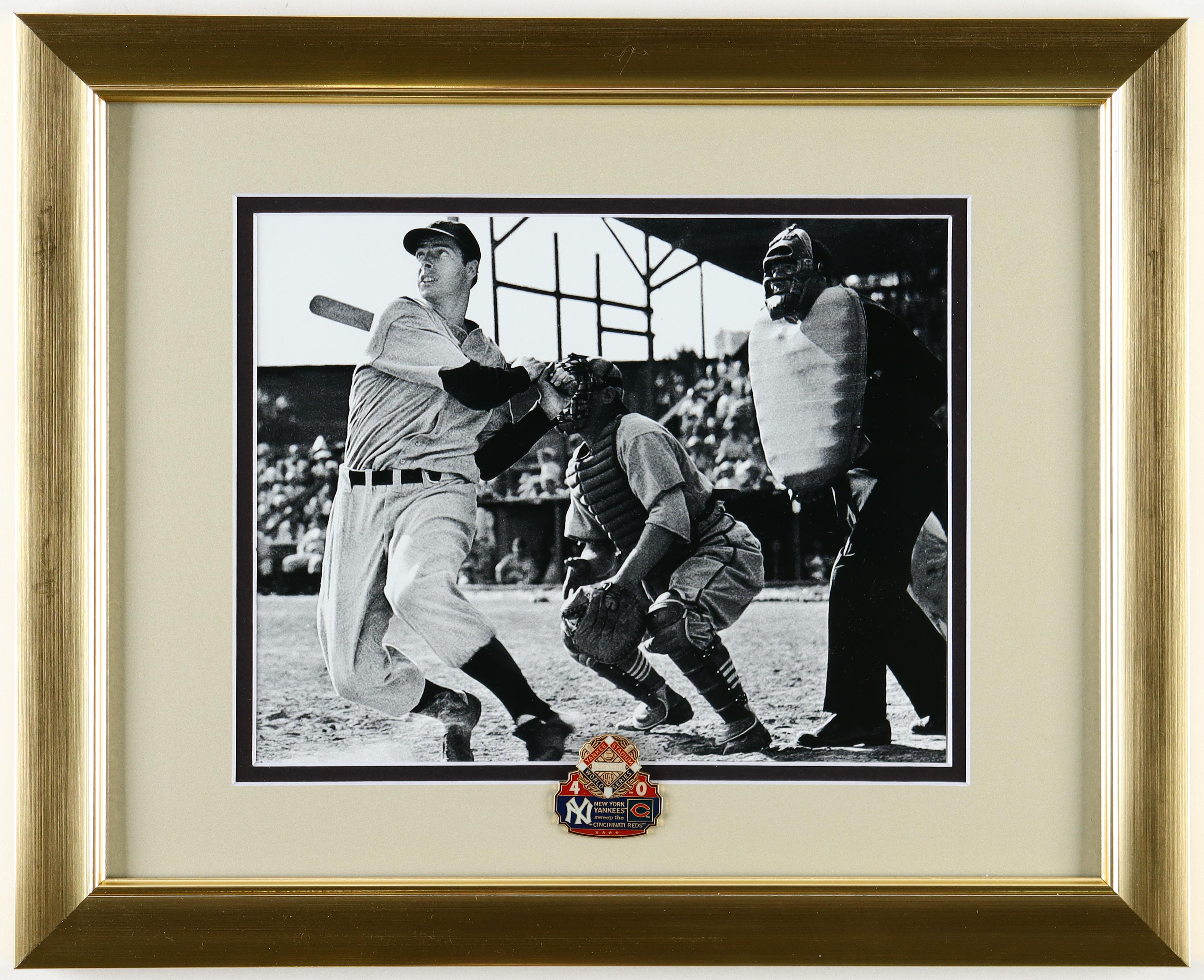 Joe DiMaggio Yankees Custom Framed Photo Display with 1939 World Series Pin