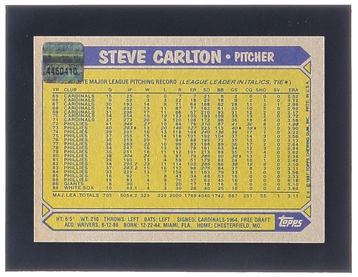 Steve Carlton Signed LE 1987 Topps #718 (UDA)