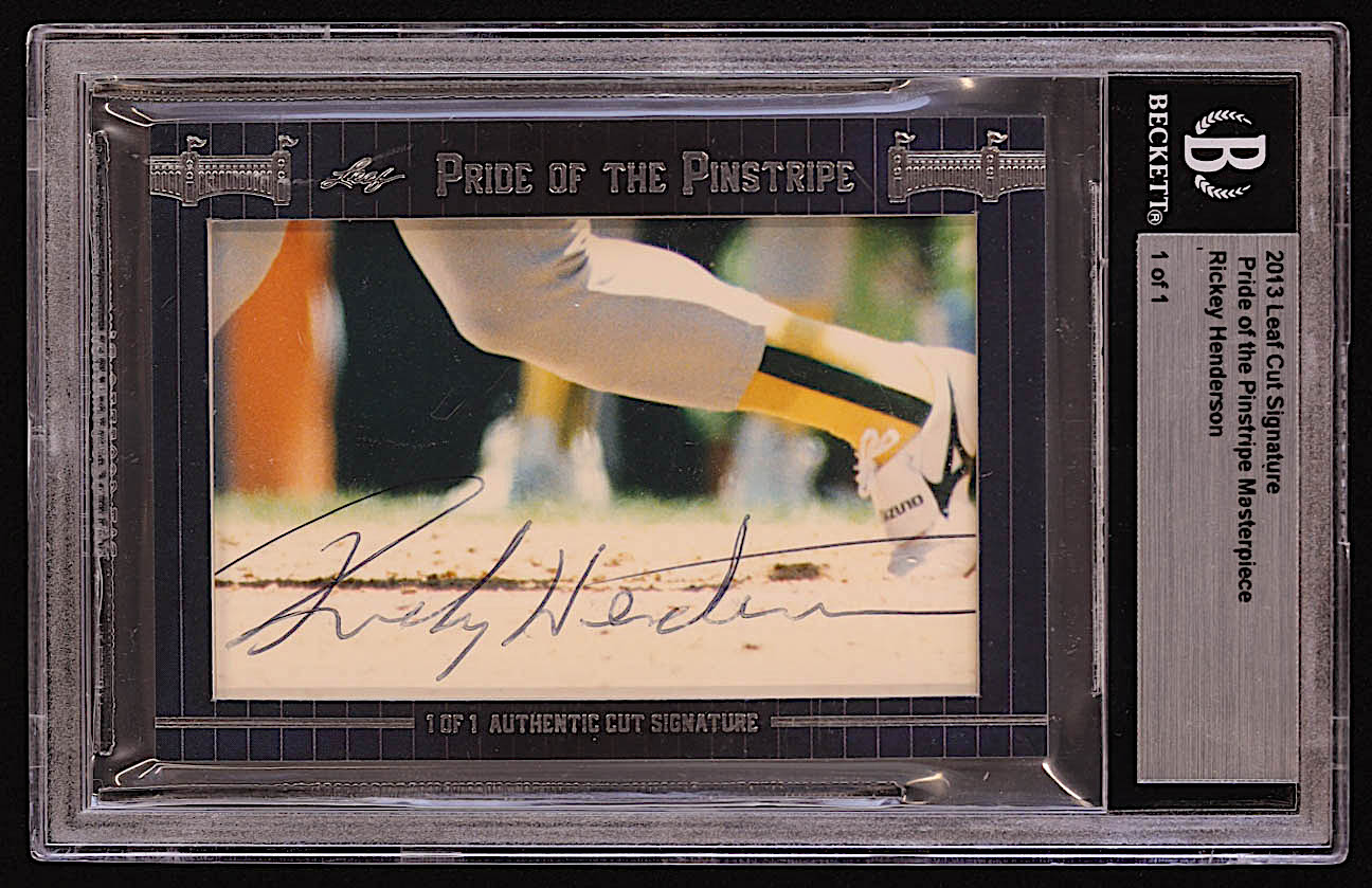 Rickey Henderson 2013 Leaf Cut Signature Pride of the Pinstripe Masterpiece #NNO #1/1 (BGS Authentic)