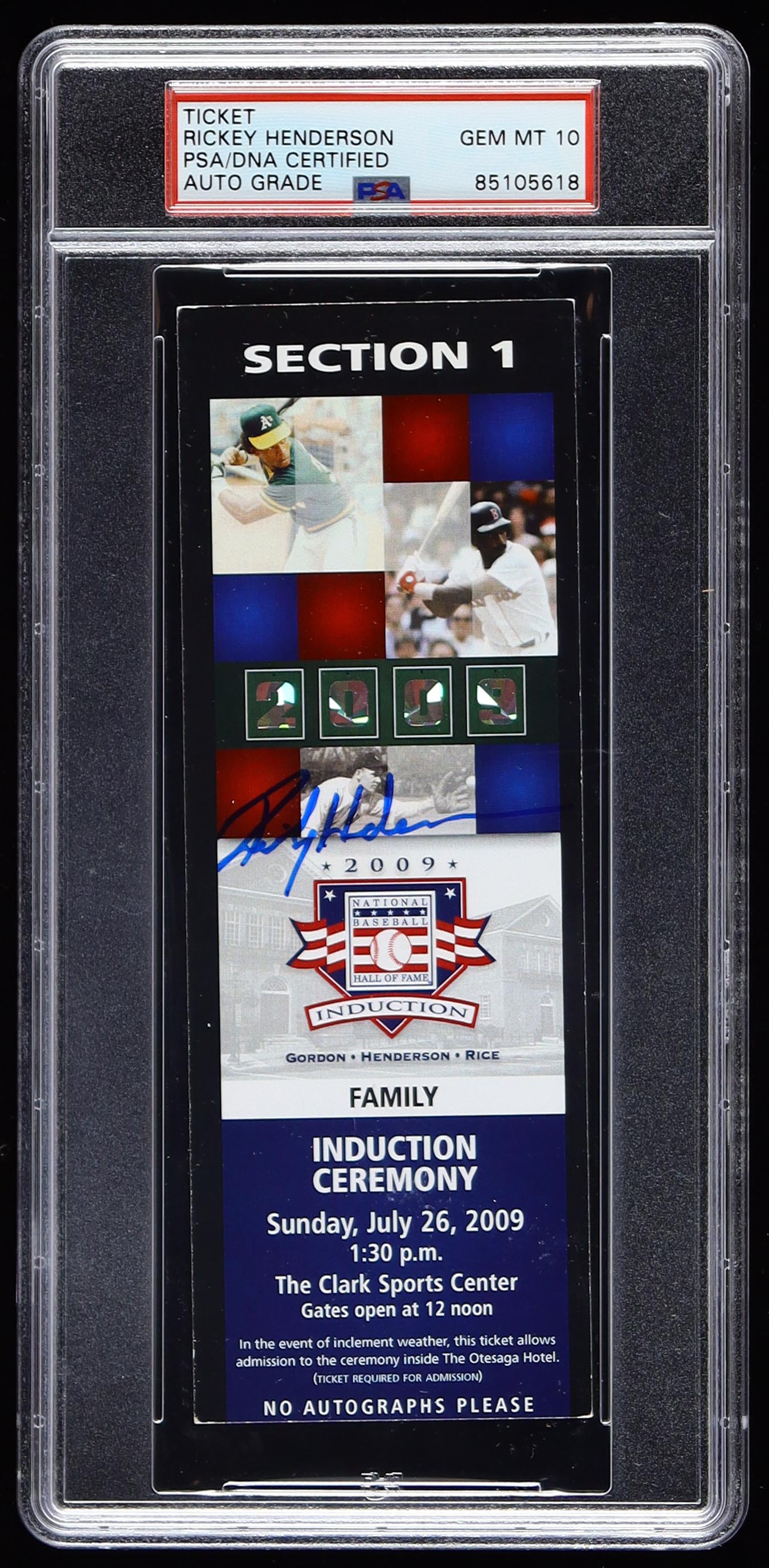 Rickey Henderson Signed 2009 National Baseball Hall of Fame Induction Ceremony Family Only Ticket (PSA | Auto Grade 10)