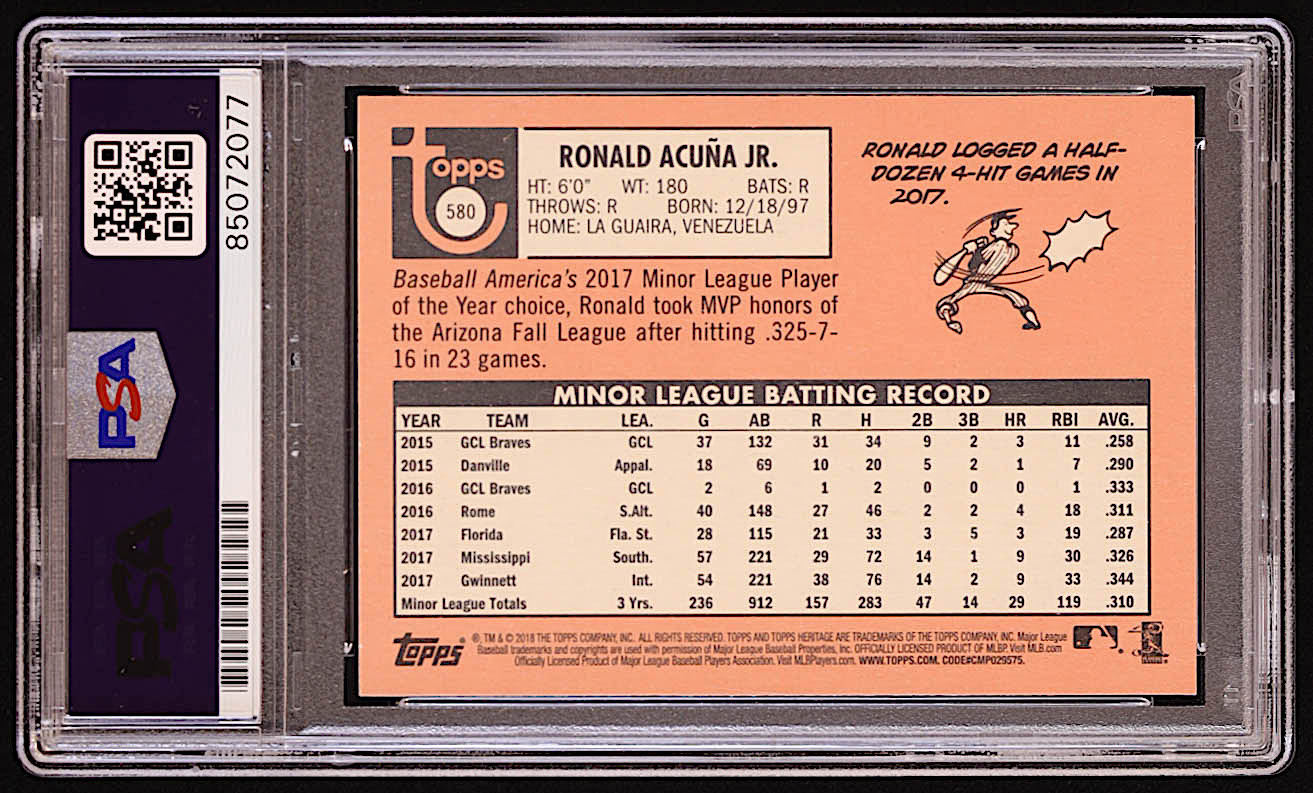 Ronald Acuna Jr. Signed 2018 Topps Heritage #580 RC (PSA | Auto 10)