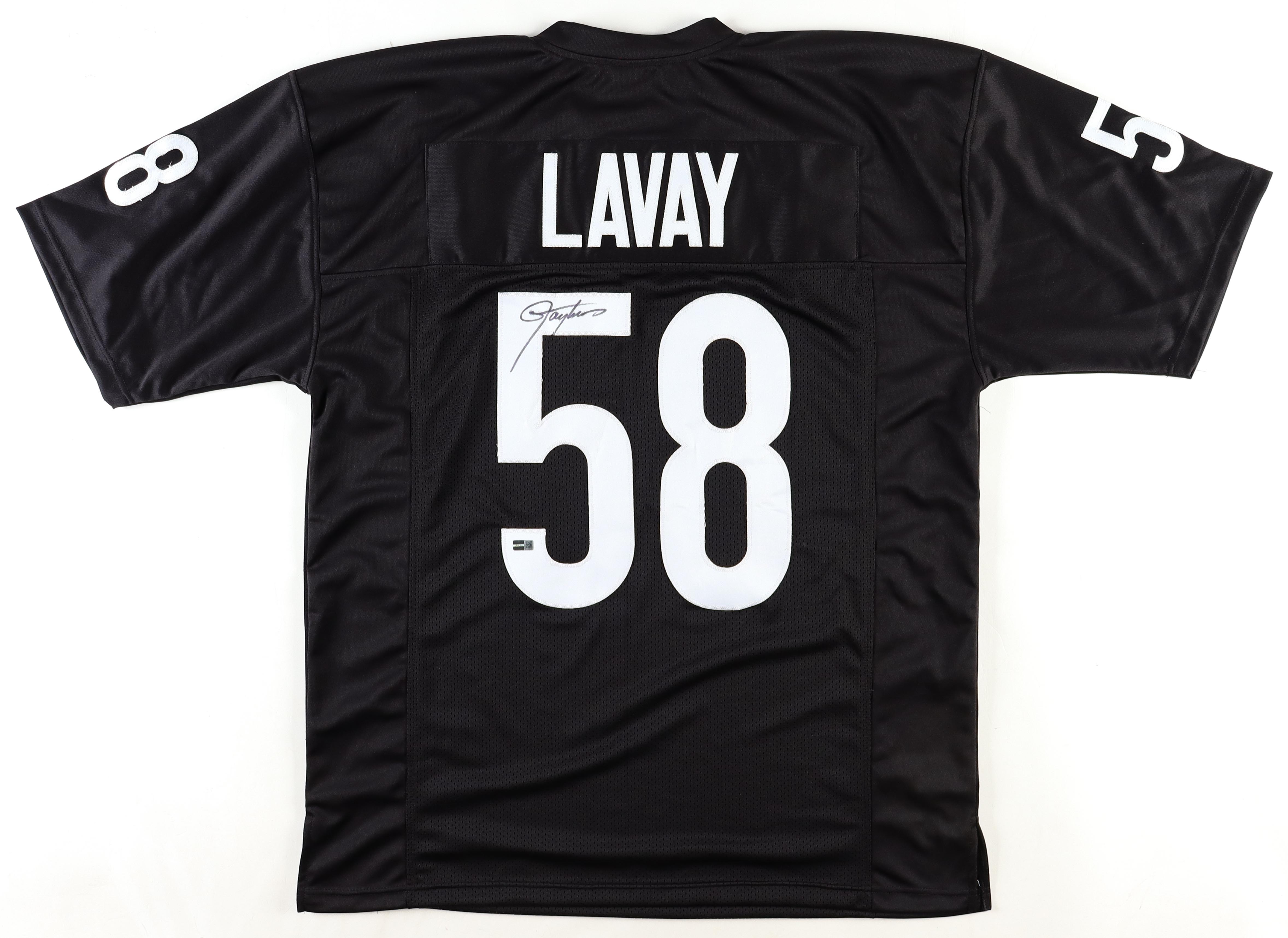 Custom jersey. Everything sewn on, size XL. Hand-signed by Lawrence Taylor (Luther 'Shark' Lavay).