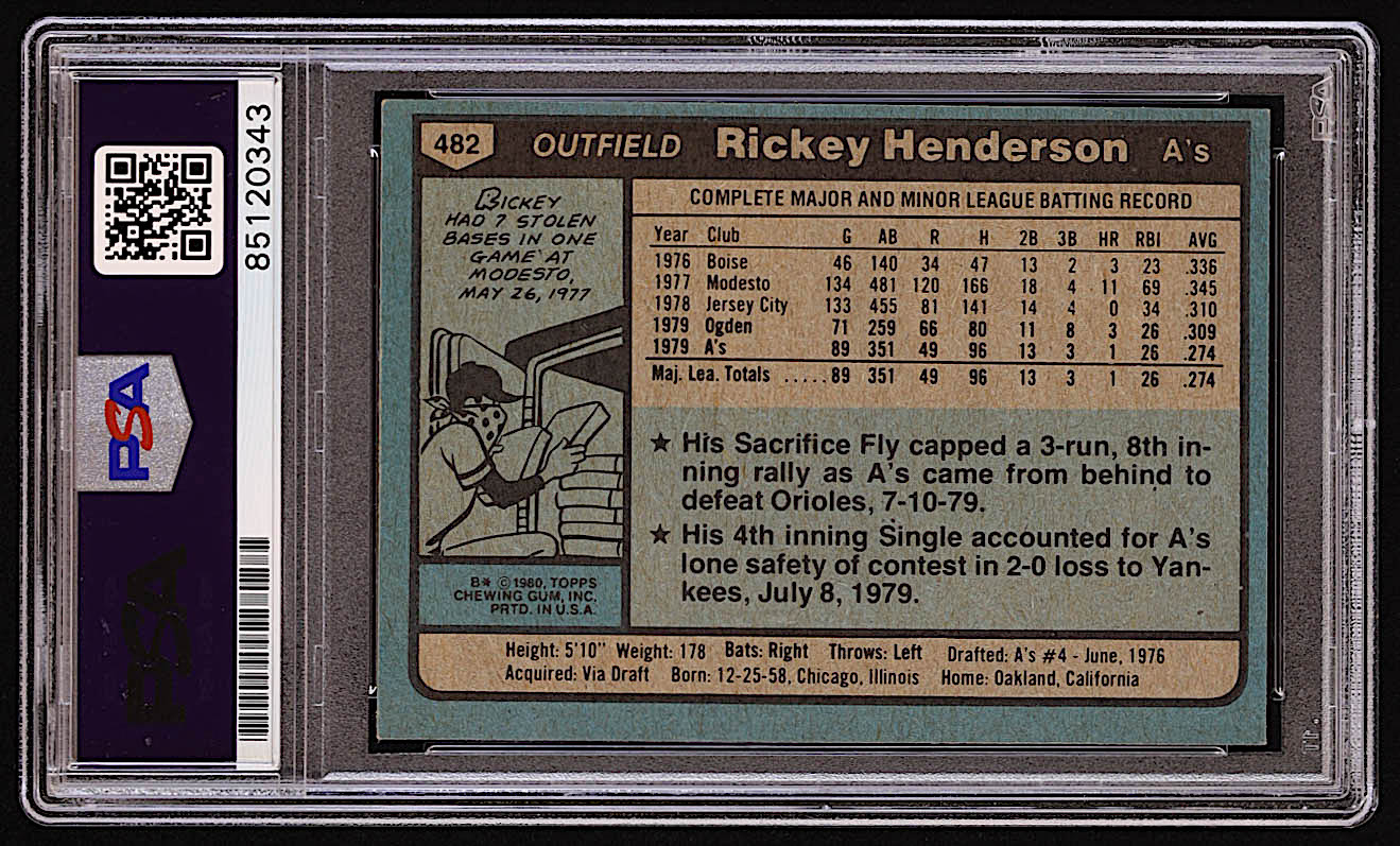 Rickey Henderson Signed 1980 Topps #482 RC (PSA | Auto 10)