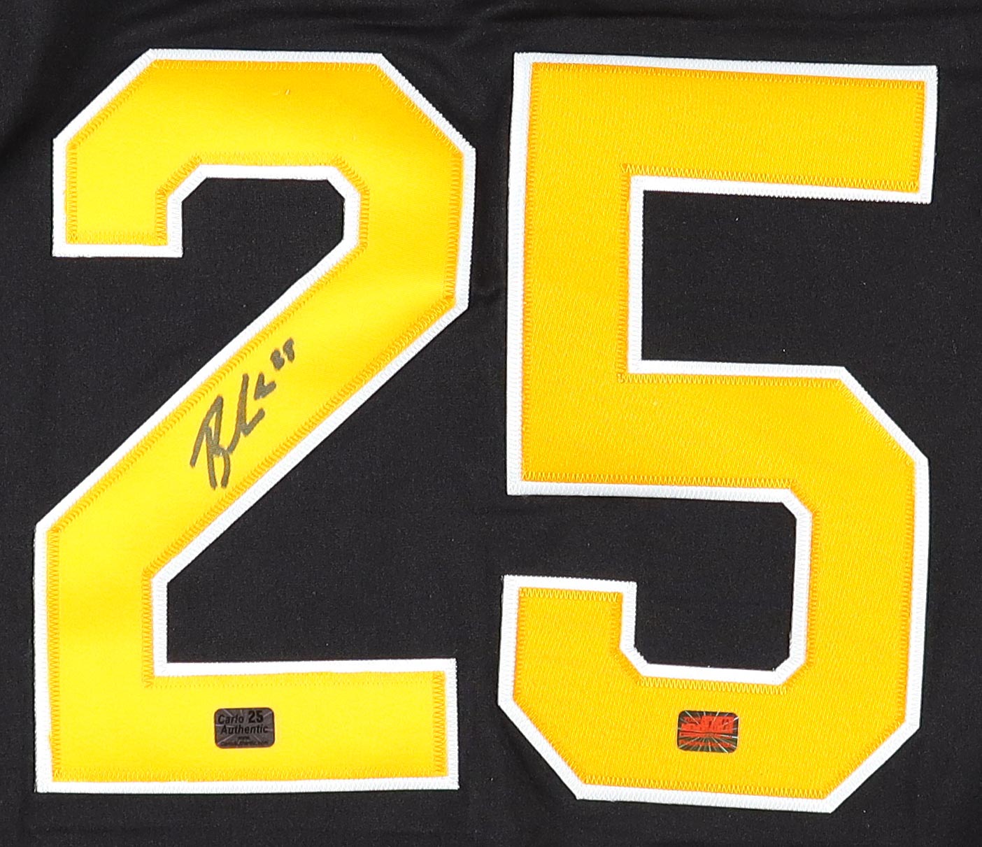 Brandon Carlo Signed #25 Bruins Jersey Swatch (YSMS & Carlo)