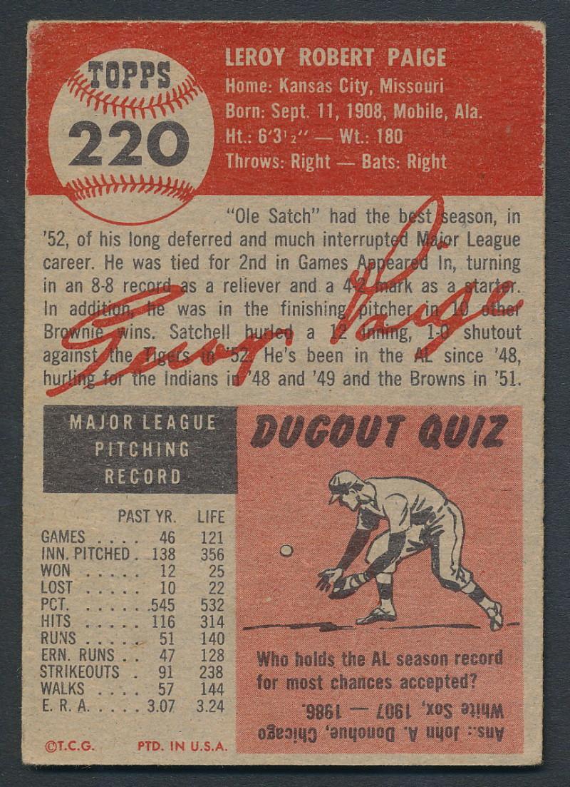 Satchel Paige 1953 Topps #220 RC