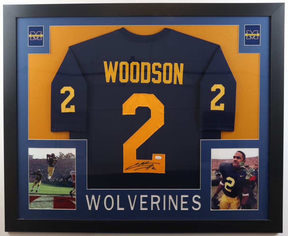 Charles Woodson Signed 35x43 Custom Framed Jersey Display (JSA)