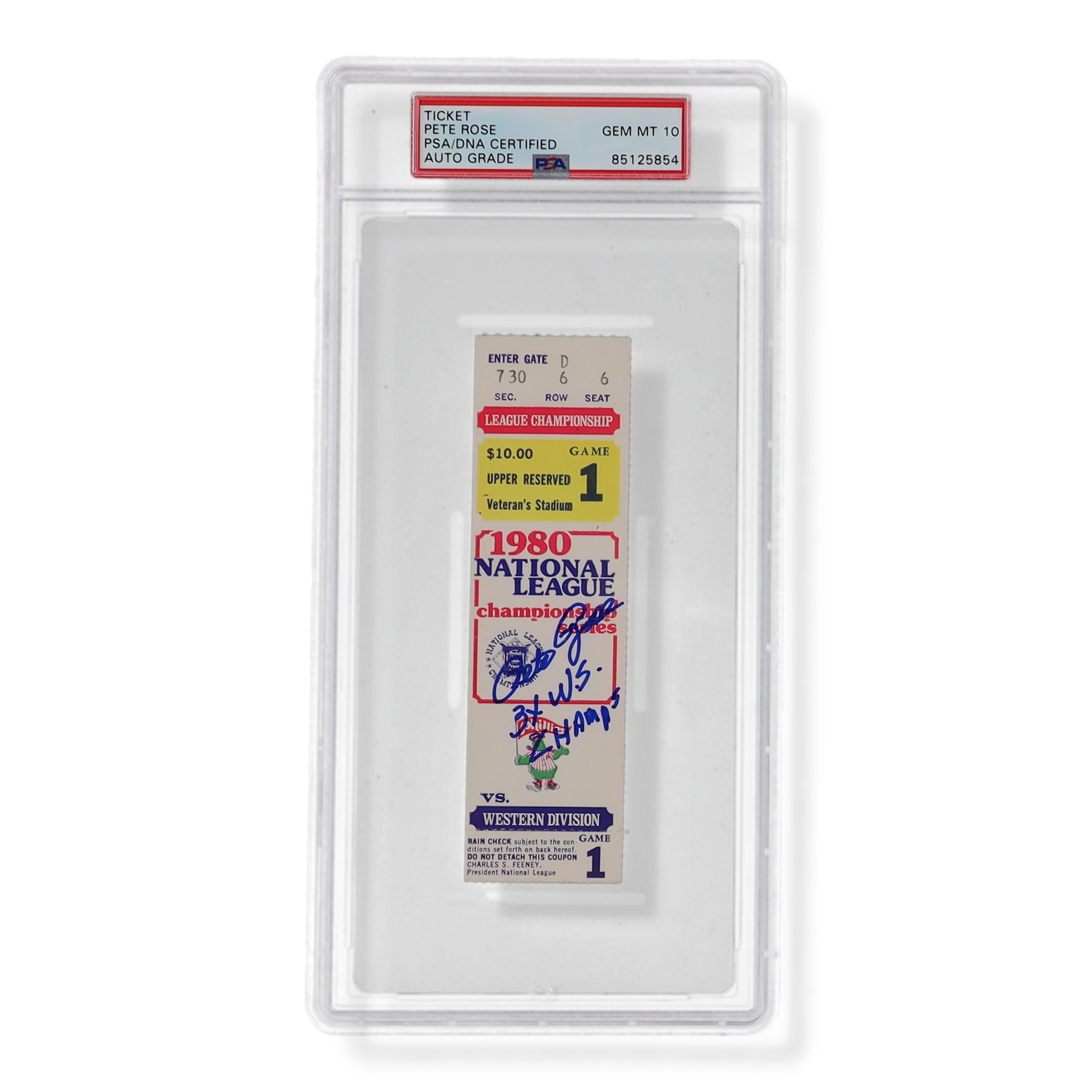 Pete Rose Signed 1980 NLCS Original Ticket Stub Inscribed "3x W.S. Champ" (PSA | Auto 10)