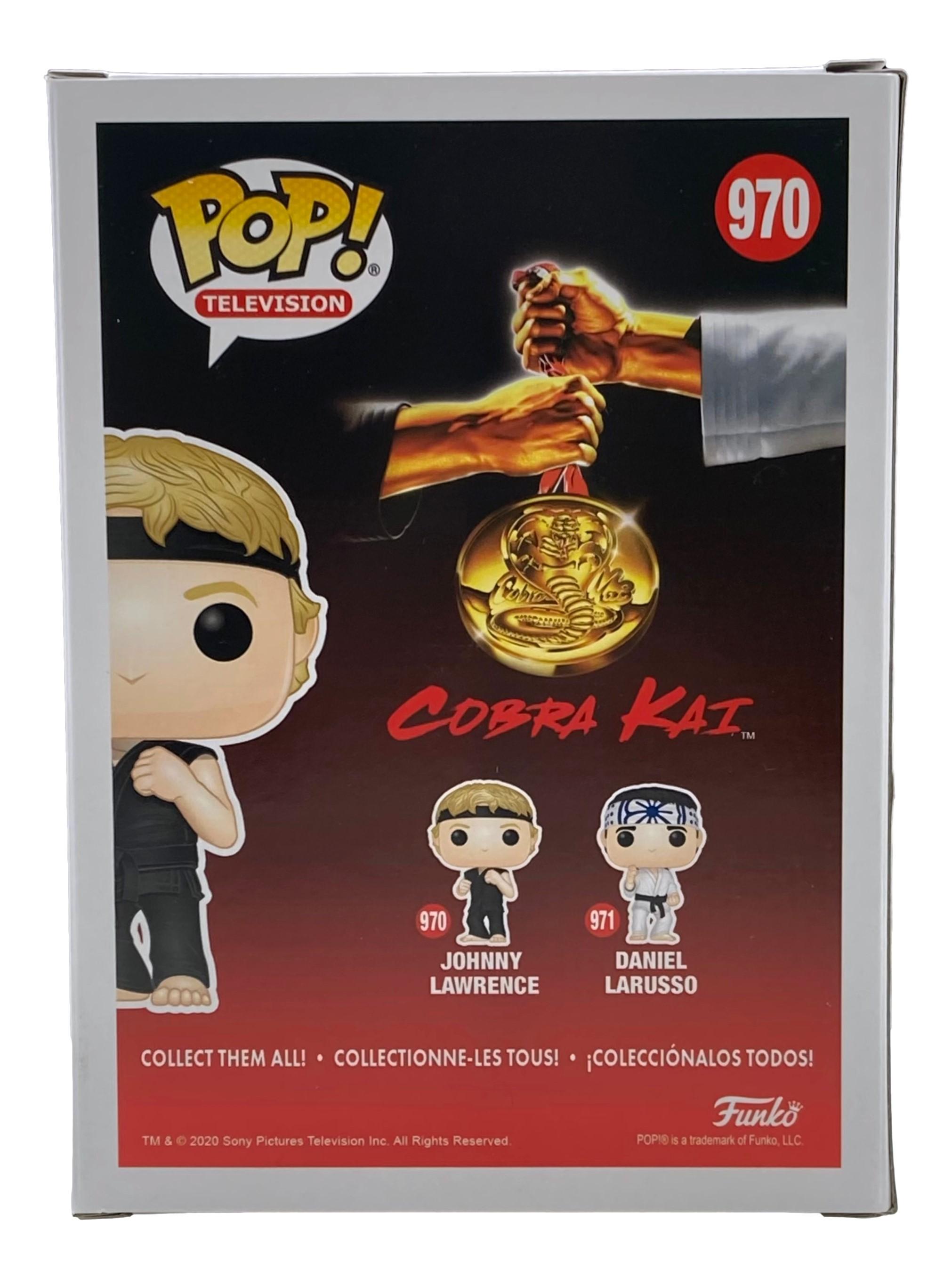 Funko Pop! figure measures approximately 4" tall and the packaging has been hand-signed by William Kabka (Johnny Lawrence).