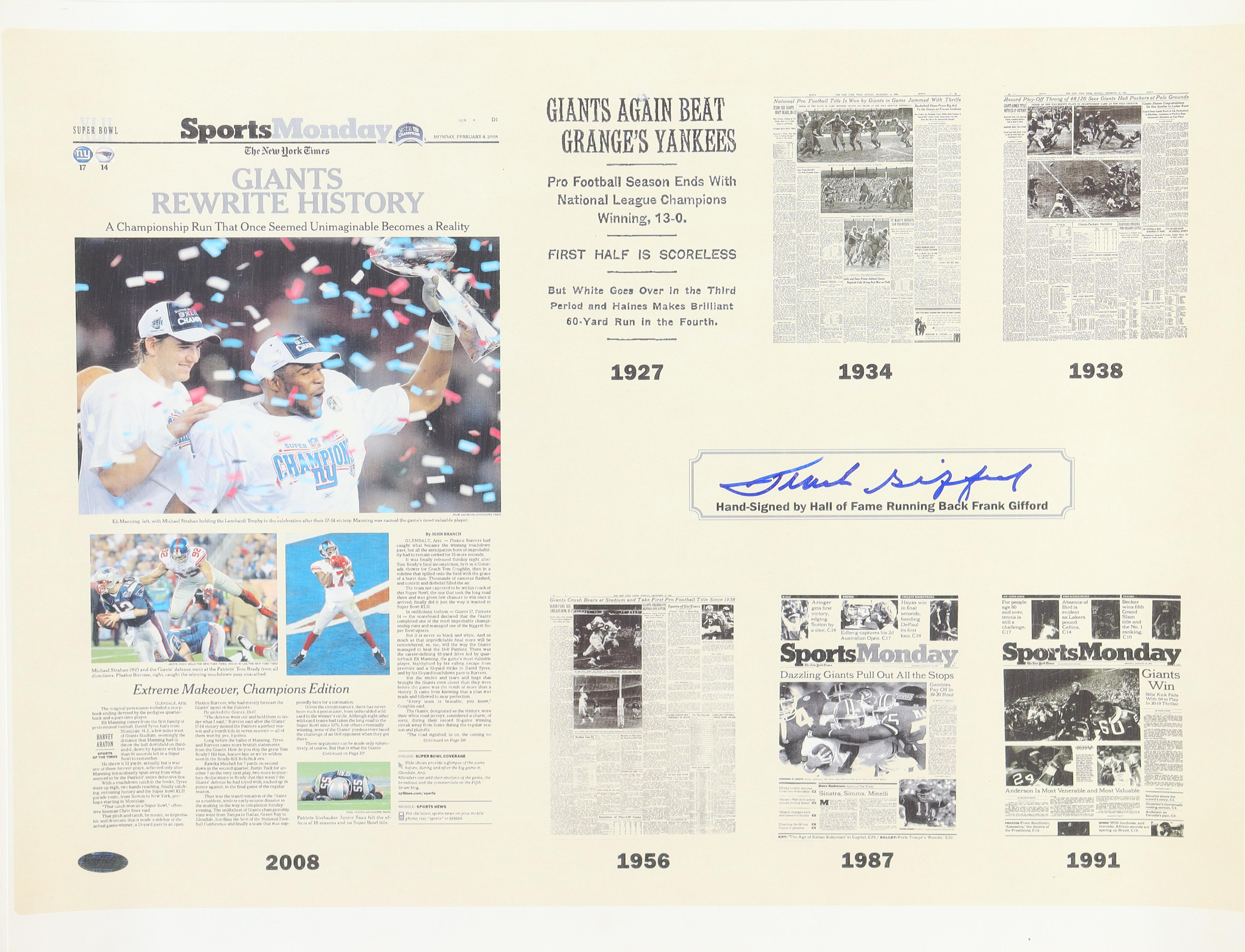 Print measures 17" x 22" in size. Hand-signed by Frank Gifford (D. 2015, New York Giants, HOF).
