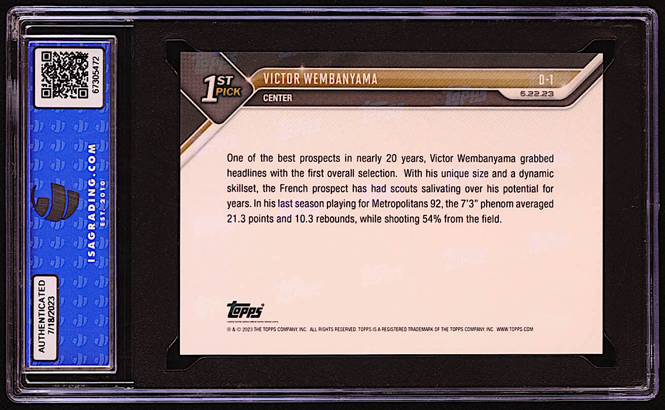 Victor Wembanyama 2023 Topps Now Draft Purple #D1 RC #20/25 (ISA 9)