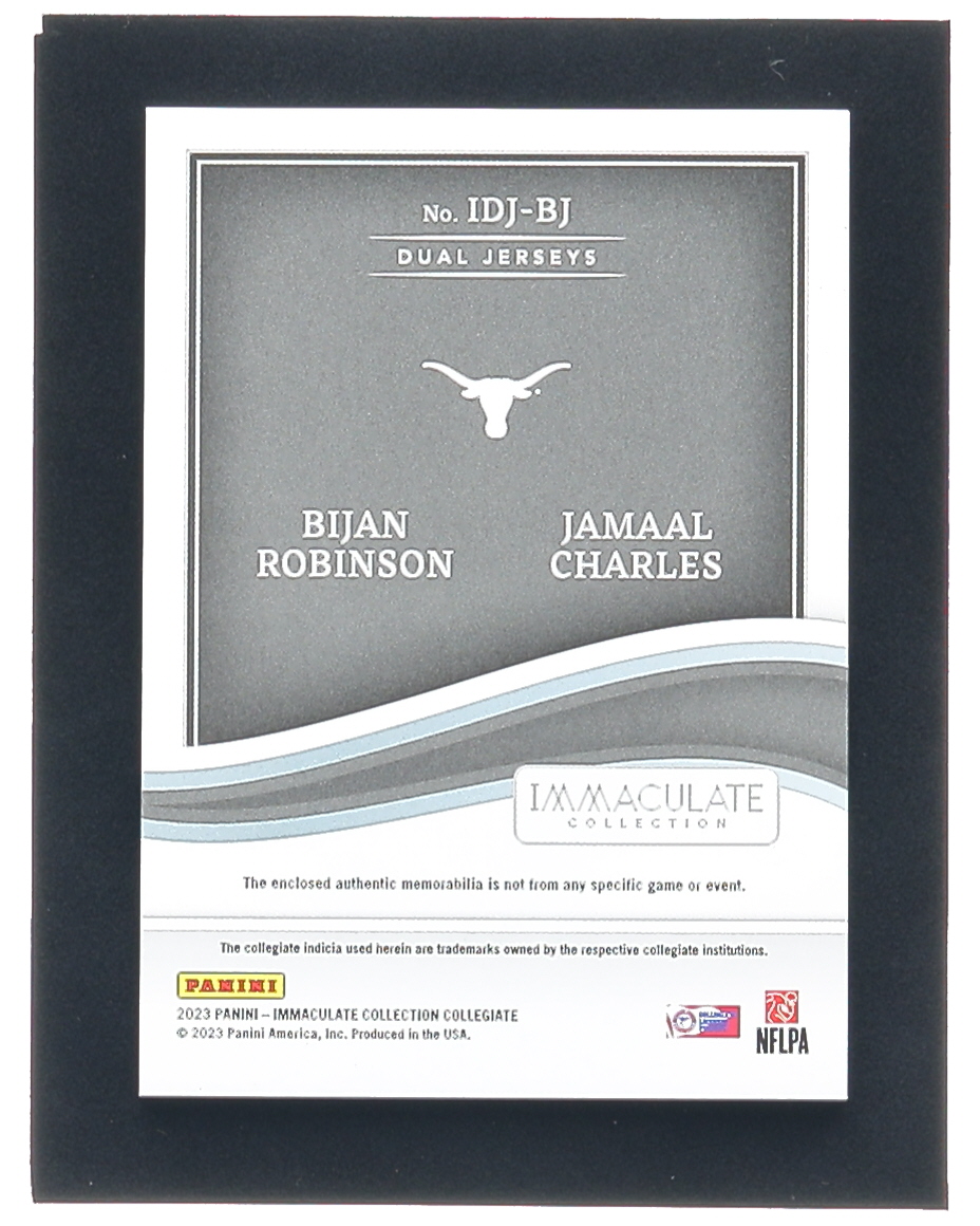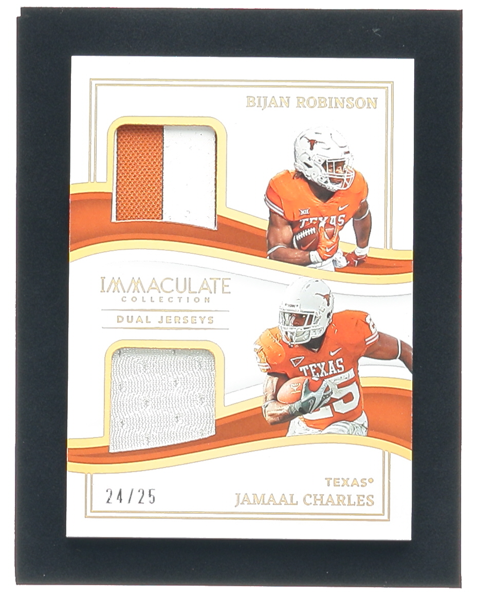 Bijan Robinson RC / Jamaal Charles 2023 Immaculate Collection Collegiate Immaculate Dual Jerseys Gold #7 #24/25 RC
