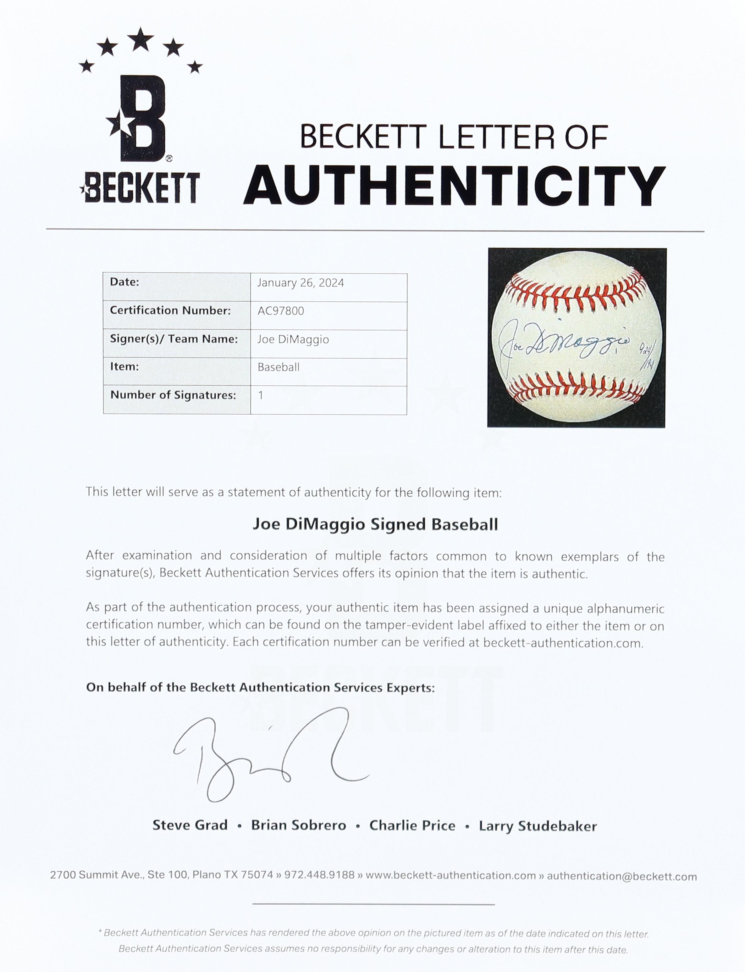 Joe DiMaggio Signed LE OAL Baseball #924/1941 (Beckett)