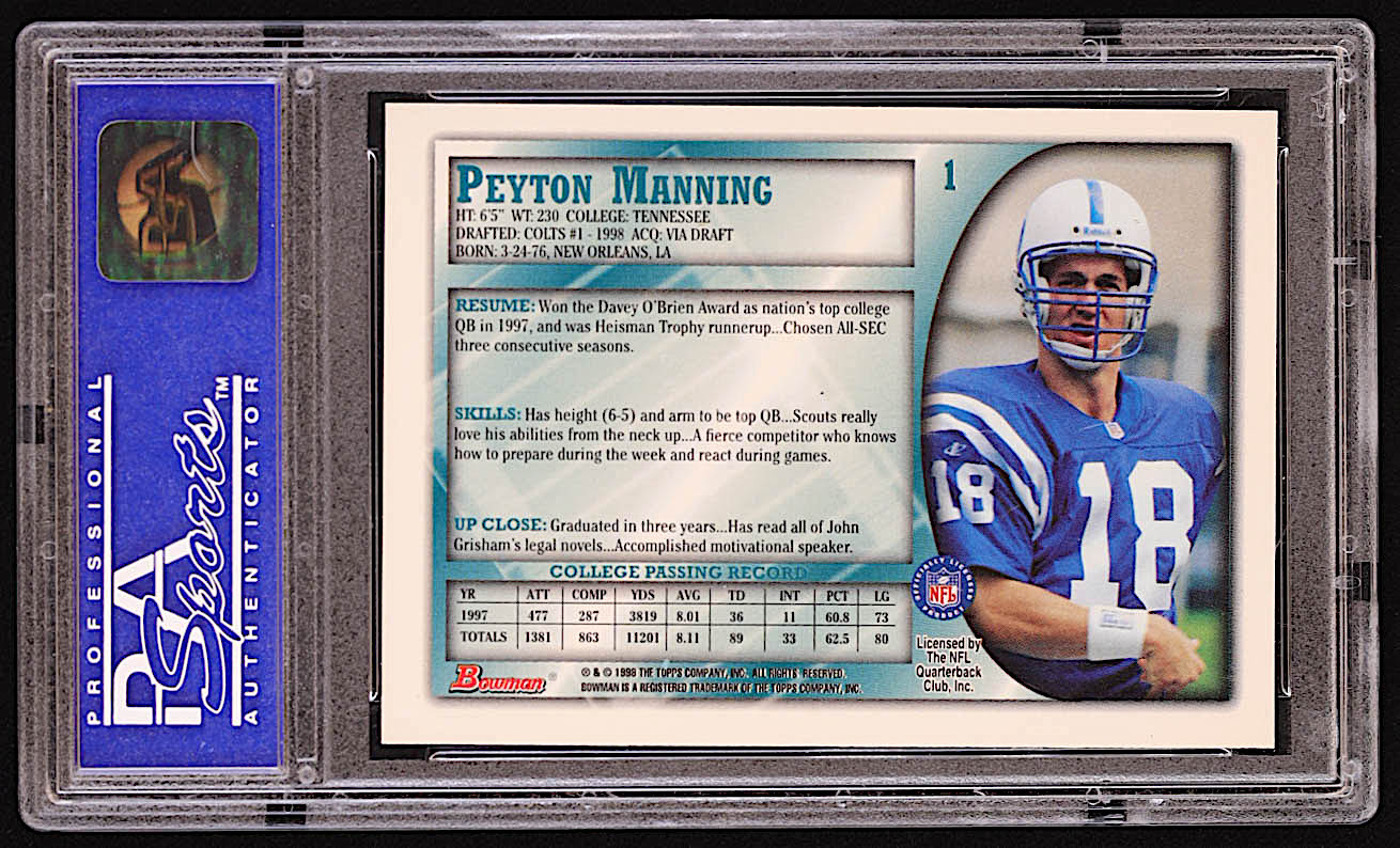 Peyton Manning 1998 Bowman #1 RC (PSA 9)